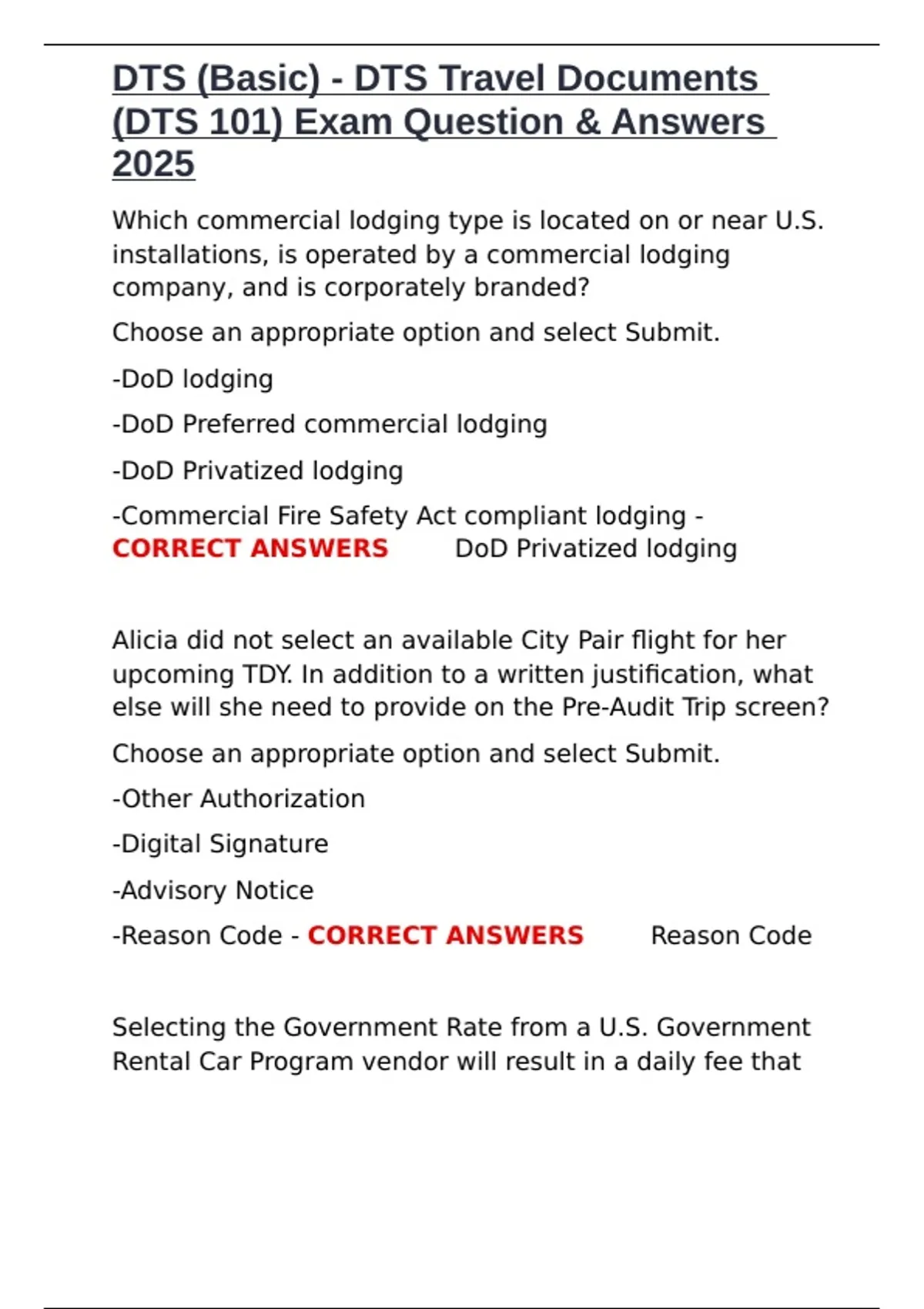 DTS (Basic) - DTS Travel Documents (DTS 101) Exam Question & Answers