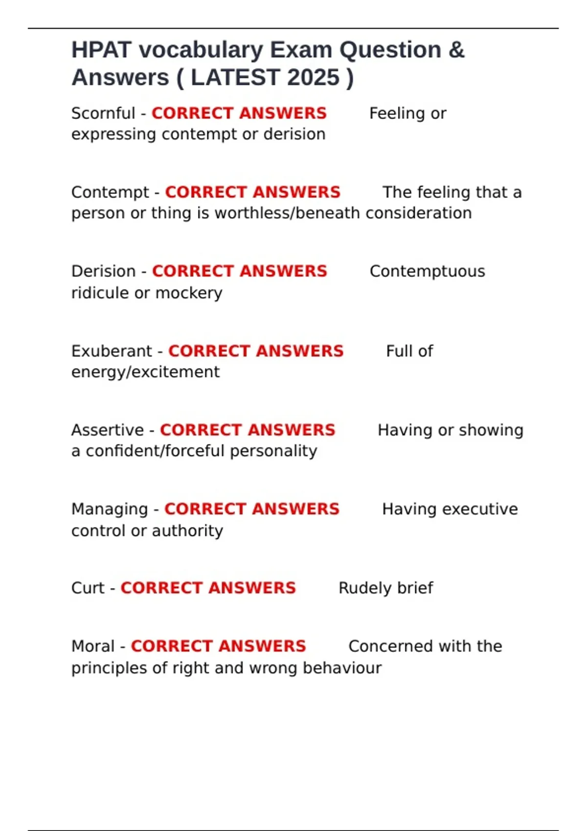Derision - CORRECT ANSWERS ✅Contemptuous
