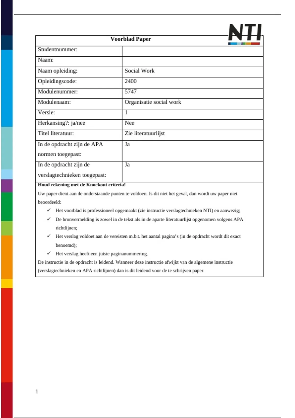 Uw paper dient aan de onderstaande punten te voldoen. Is dit niet het geval, dan wordt uw paper niet