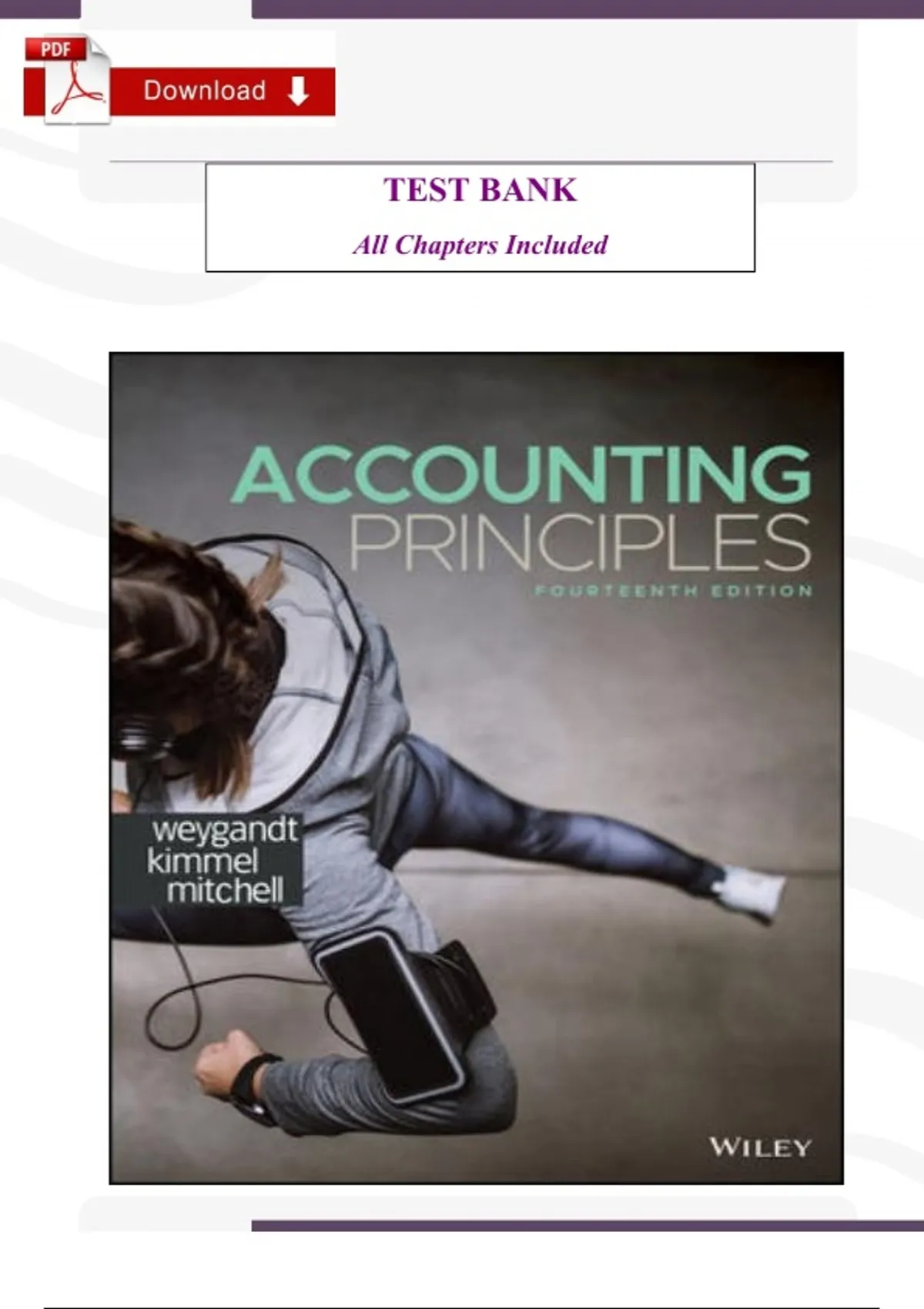 This comprehensive test bank for Accounting Principles, 15th Edition by Jerry J. Weygandt provides a full set of chapter-wise questions, including multiple-choice, true/false, and problem-solving/essay questions. It is an essential resource for instructors, students, and accounting professionals preparing for exams, quizzes, and homework review. What’s Included: ️ Complete test bank covering all 27 chapters ️ Multiple-choice, true/false, and problem-solving questions ️ Questions aligned with chapter learning objectives ️ Designed for exam preparation, homework, and review ️ Organized and easy-to-use format for instructors and students Major Topics Covered: Introduction to financial accounting and the accounting cycle Recording business transactions and adjusting entries Preparation of financial statements Accounting for merchandising operations Internal controls and cash management Receivables, inventory, and long-term assets Liabilities, payroll, and interest calculations Equity, stockholders’ equity, and dividends Revenue recognition and expense measurement Financial statement analysis and ratio calculations Accounting for partnerships, corporations, and cash flows Managerial accounting concepts and cost management Ethical issues and professional standards in accounting Why Students and Instructors Choose This Test Bank: Saves time preparing for exams, quizzes, and assignments Enhances understanding of financial and managerial accounting concepts Ideal for Accounting, Finance, Business Administration, and CPA exam preparation Supports both classroom instruction and self-study Helps students consistently achieve top grades Textbook Details: Accounting Principles (15th Edition) Authors: Jerry J. Weygandt, Paul D. Kimmel, Donald E. Kieso Publisher: Wiley This test bank is a must-have resource for mastering accounting principles with comprehensive chapter-wise questions and practical problem-solving exercises.
