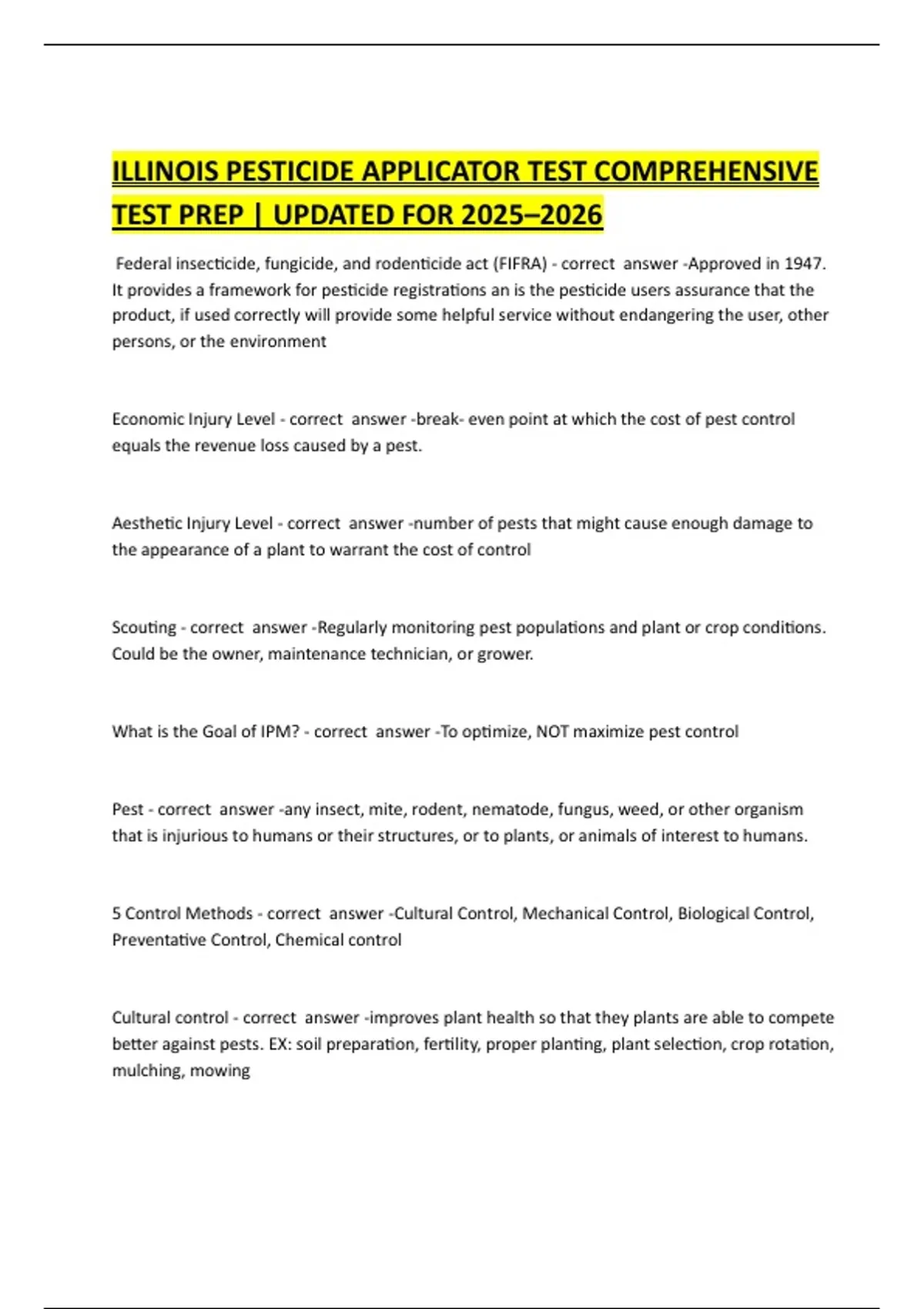 ILLINOIS PESTICIDE APPLICATOR TEST COMPREHENSIVE