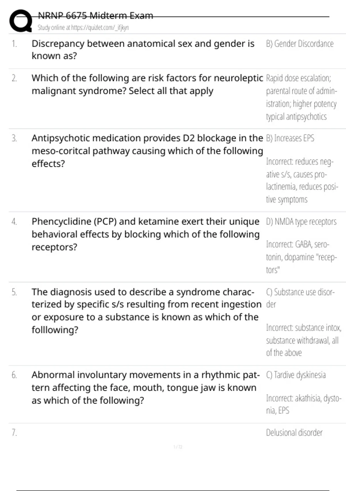 1. Discrepancy between anatomical sex and gender is B) Gender Discordance