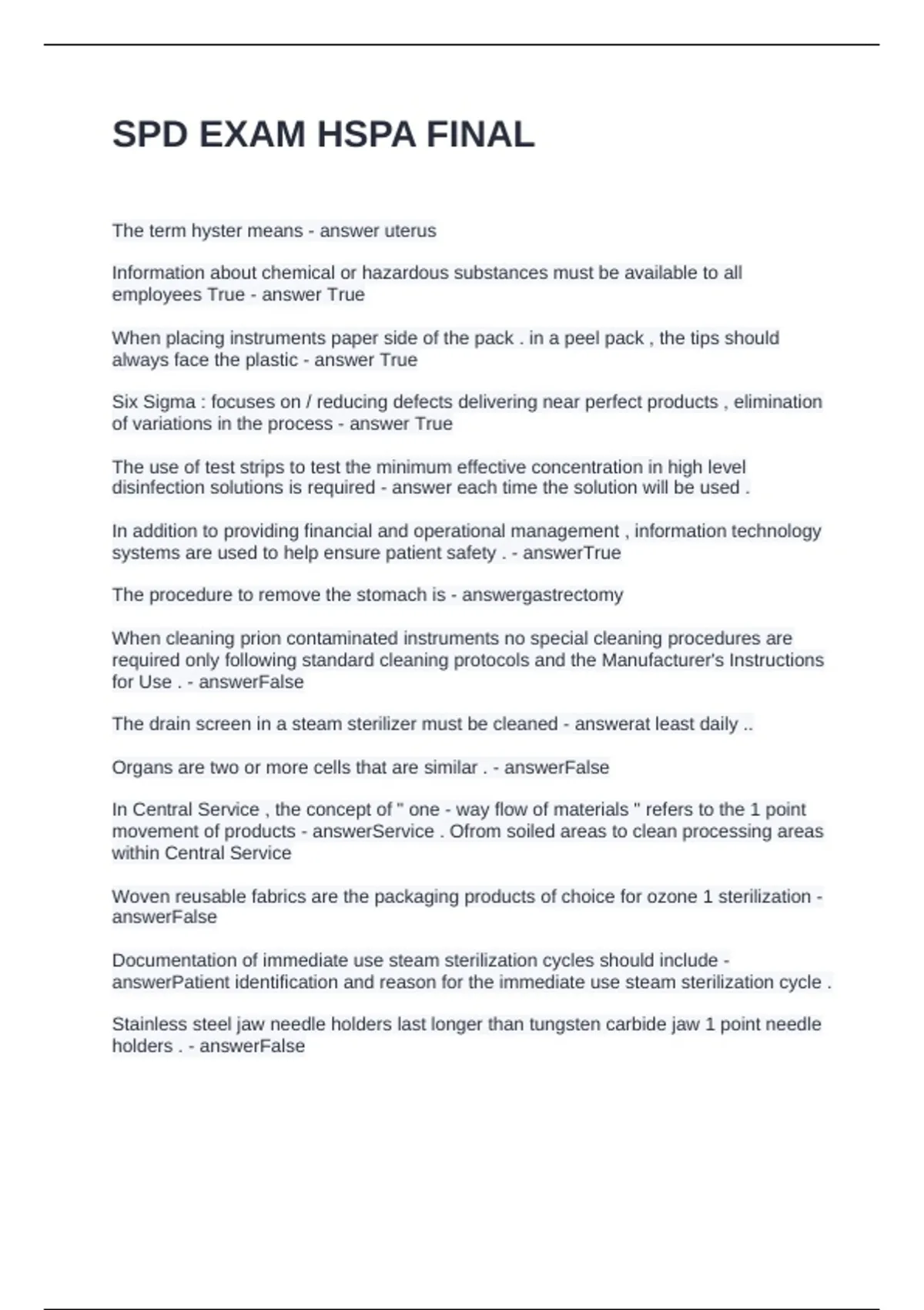 SPD EXAM HSPA FINAL