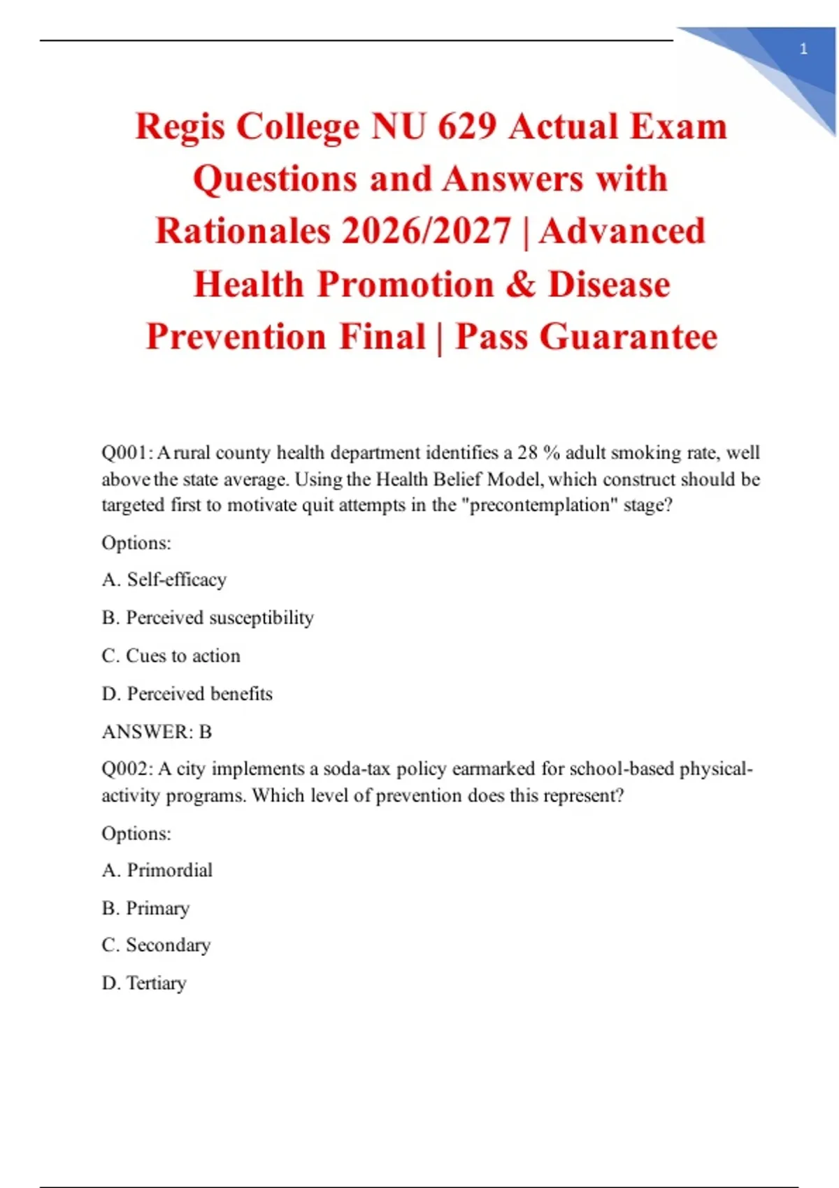 Q001: A rural county health department identifies a 28 % adult smoking rate, well