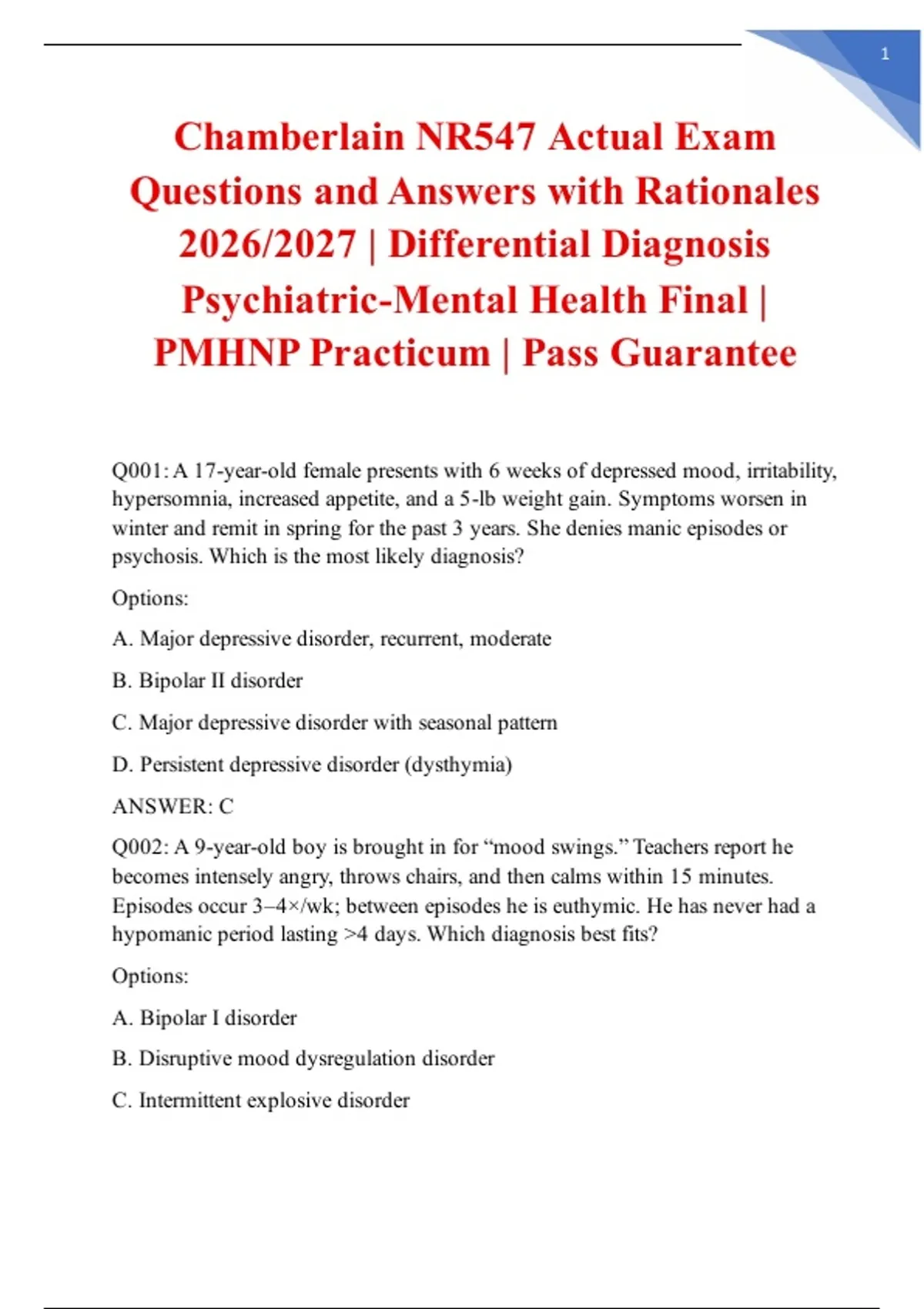 Q001: A 17-year-old female presents with 6 weeks of depressed mood, irritability,
