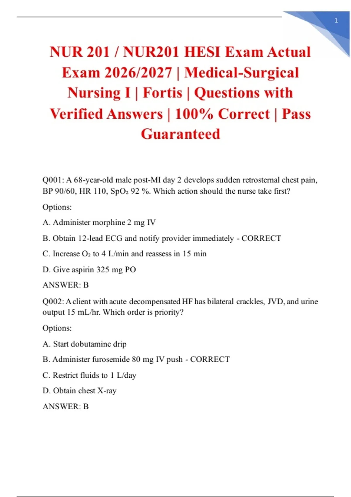 NUR 201 / NUR201 HESI Exam Actual
