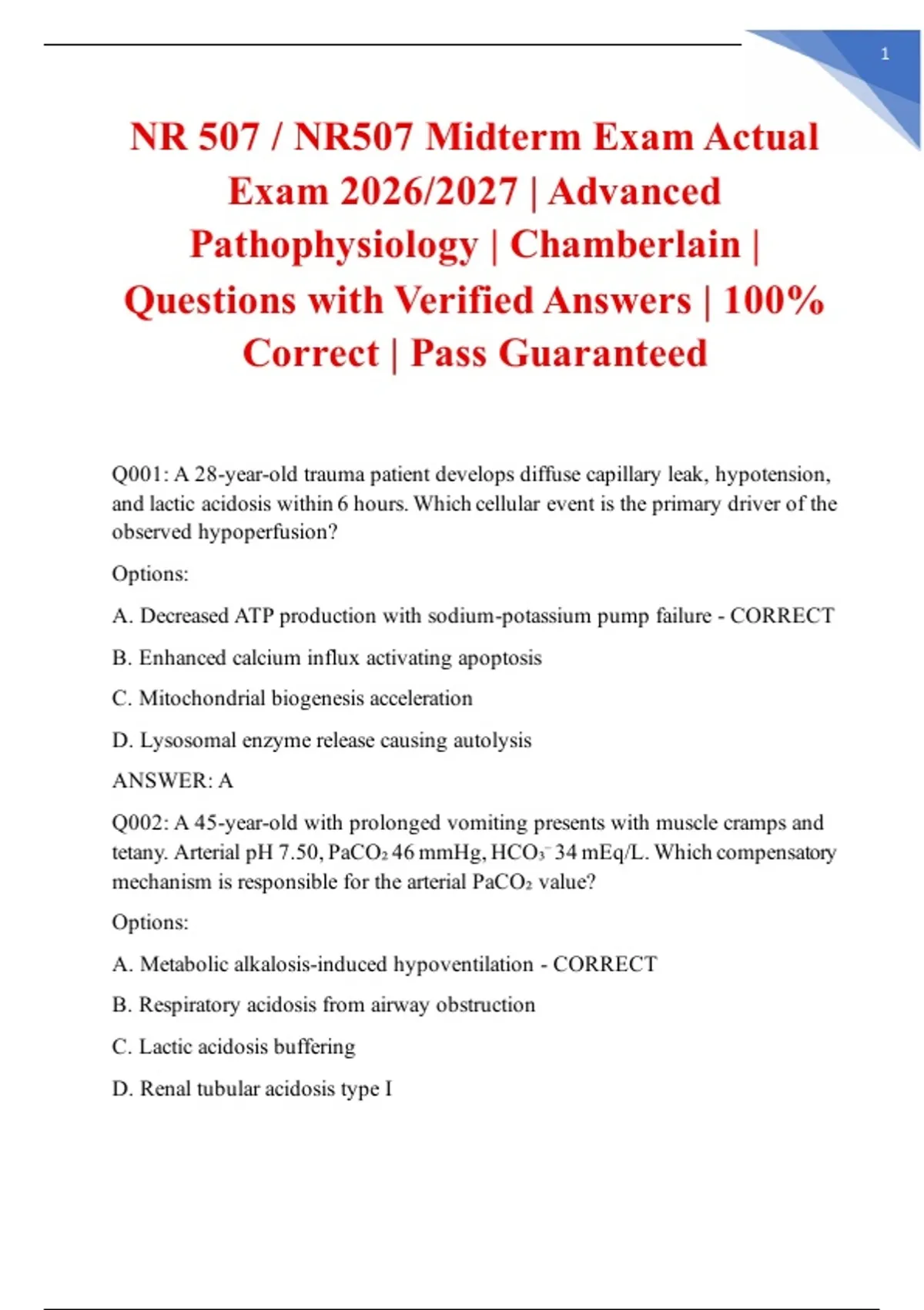 NR 507 / NR507 Midterm Exam Actual Exam 2026/2027 | Advanced Pathophysiology | Chamberlain | Questions with Verified Answers | 100% Correct | Pass Guaranteed