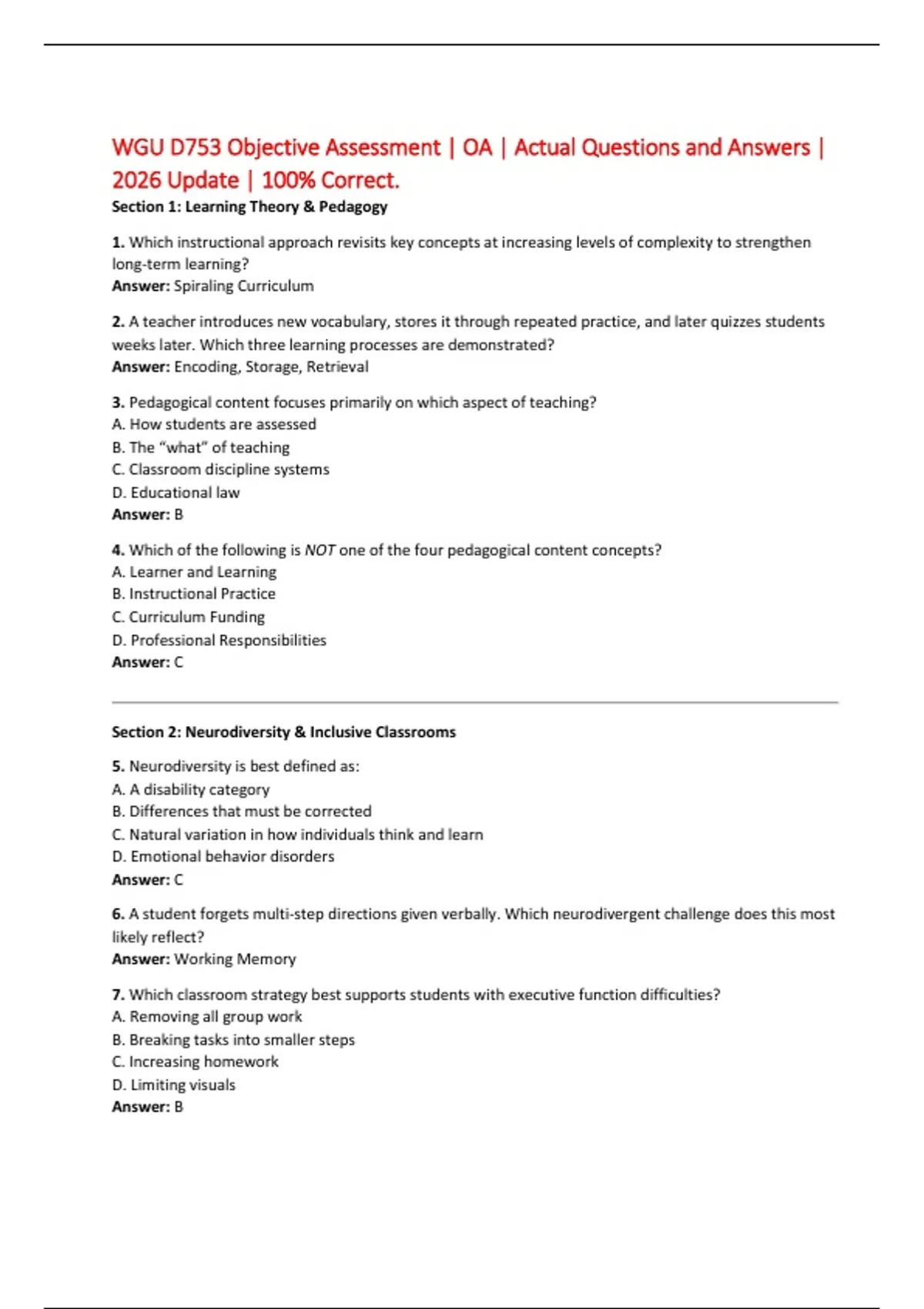 WGU D753 Objective Assessment | OA | Actual Questions and Answers |