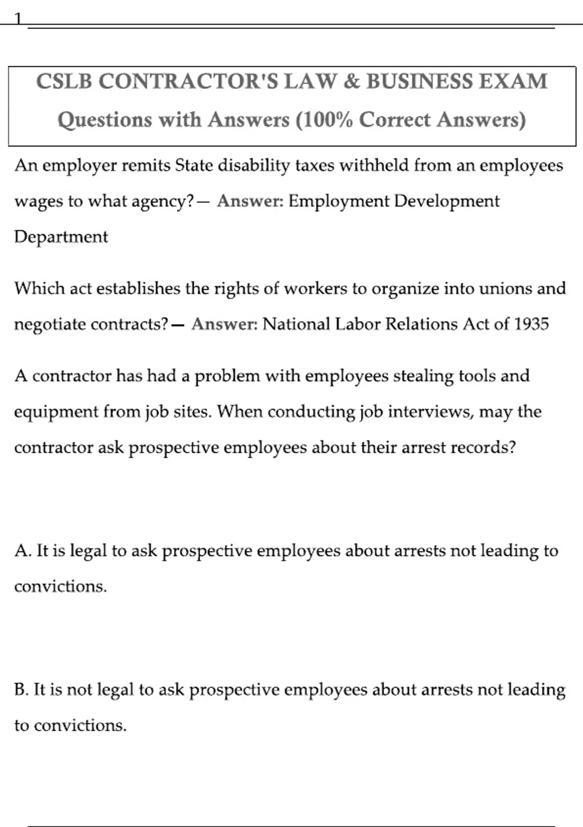 Prepare for the CSLB Contractor's Law & Business Exam with this comprehensive resource featuring practice questions, answers, and study material covering contractor licensing laws, business management, construction regulations, safety, and legal responsibilities. Ideal for aspiring contractors seeking exam readiness and licensing success.