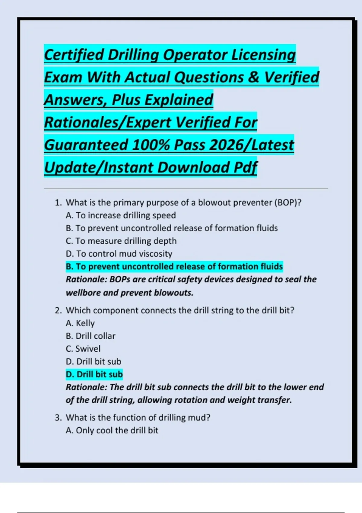Rationale: Drilling mud serves multiple purposes including