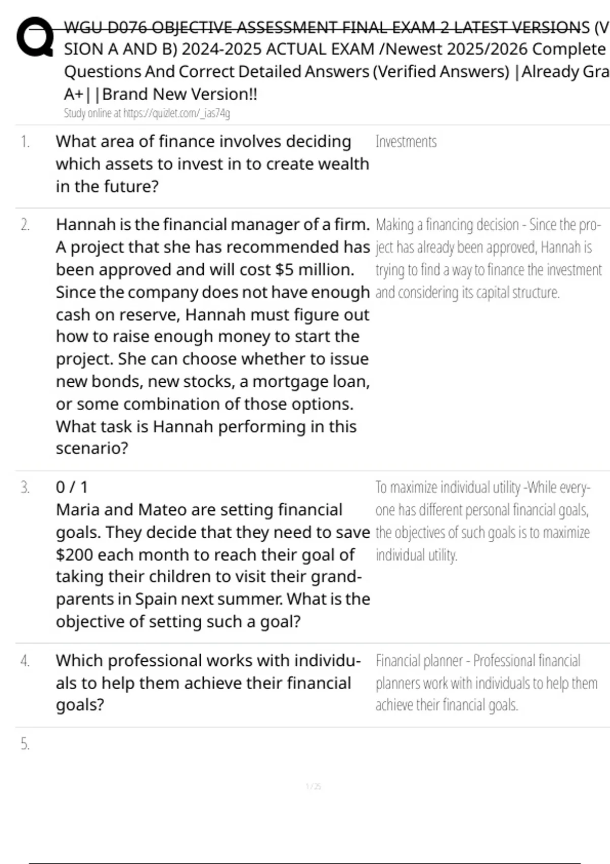 , WGU D076 OBJECTIVE ASSESSMENT FINAL EXAM 2 LATEST VERSIONS (VE