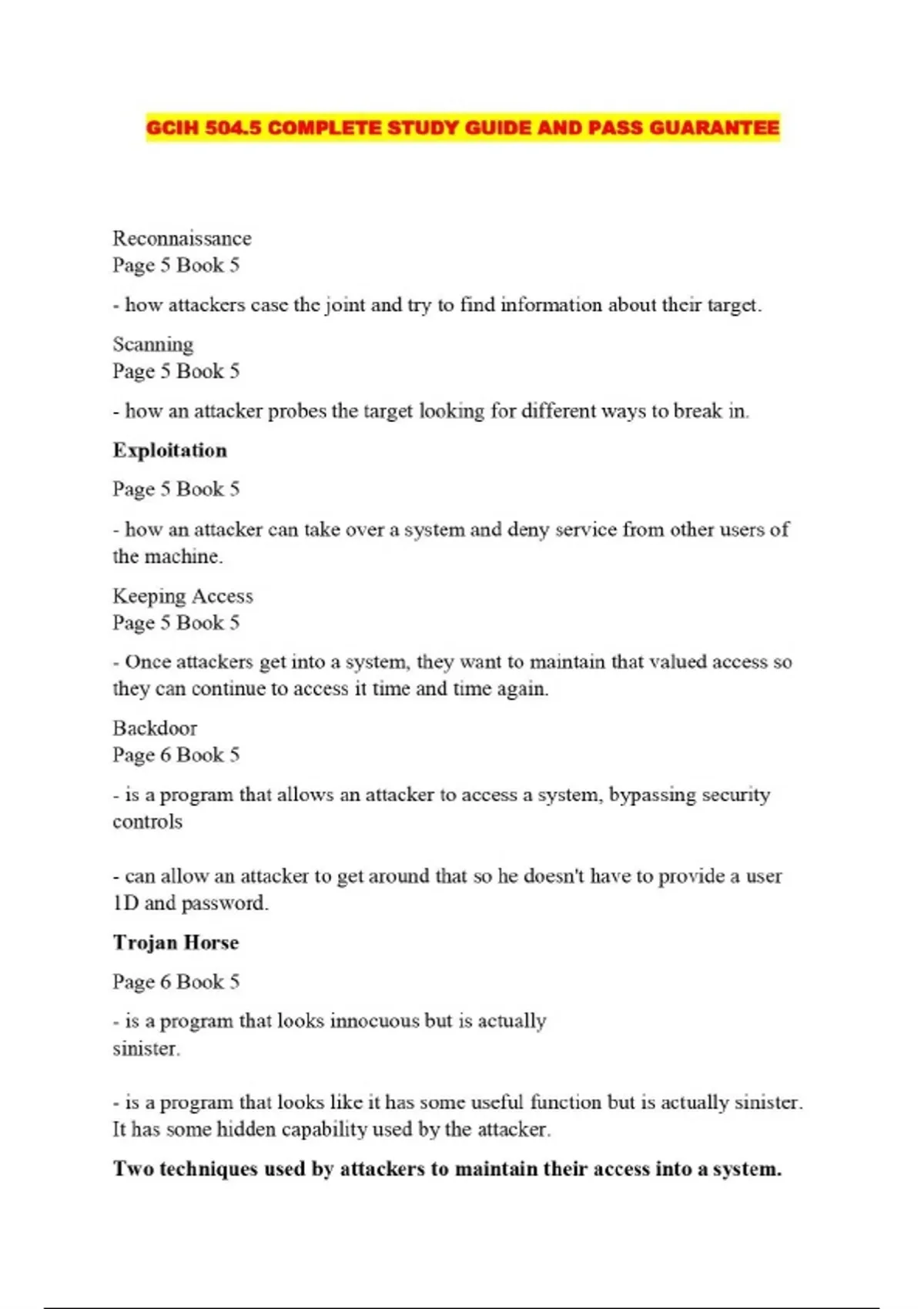 GCIH 504.5 COMPLETE STUDY GUIDE AND PASS GUARANTEE...