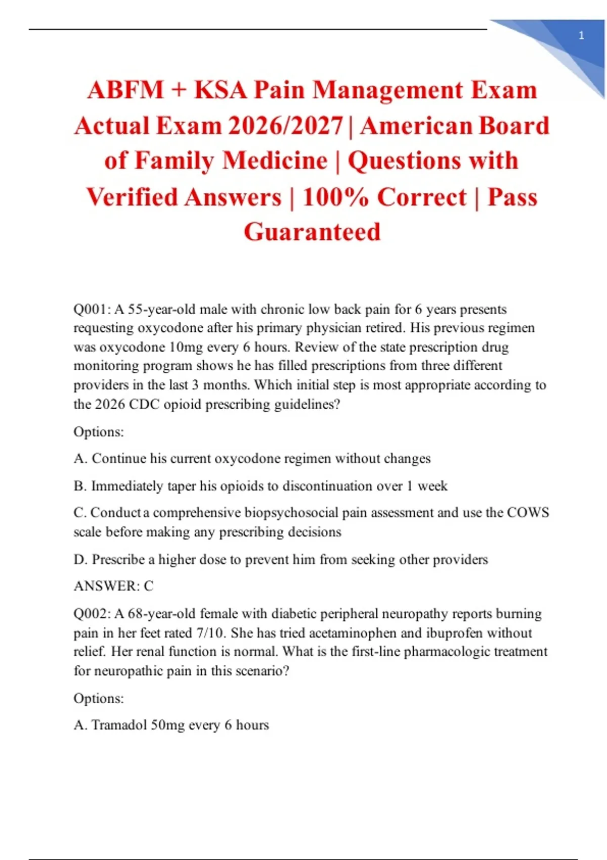 ABFM + KSA Pain Management Exam