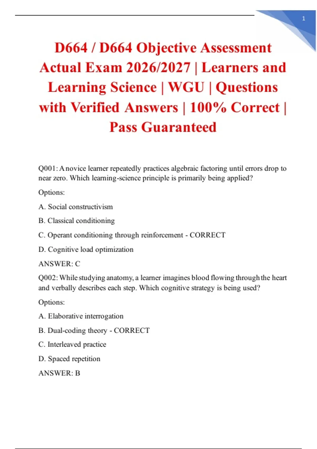 Actual Exam 2026/2027 | Learners and