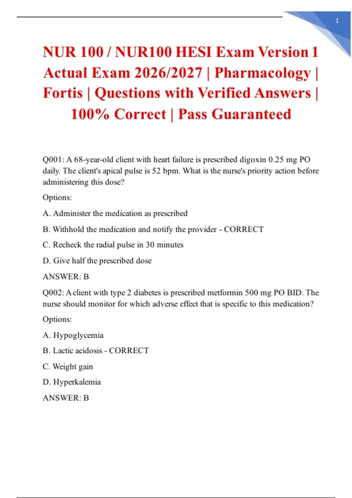 Q001: A 68-year-old client with heart failure is prescribed digoxin 0.25 mg PO