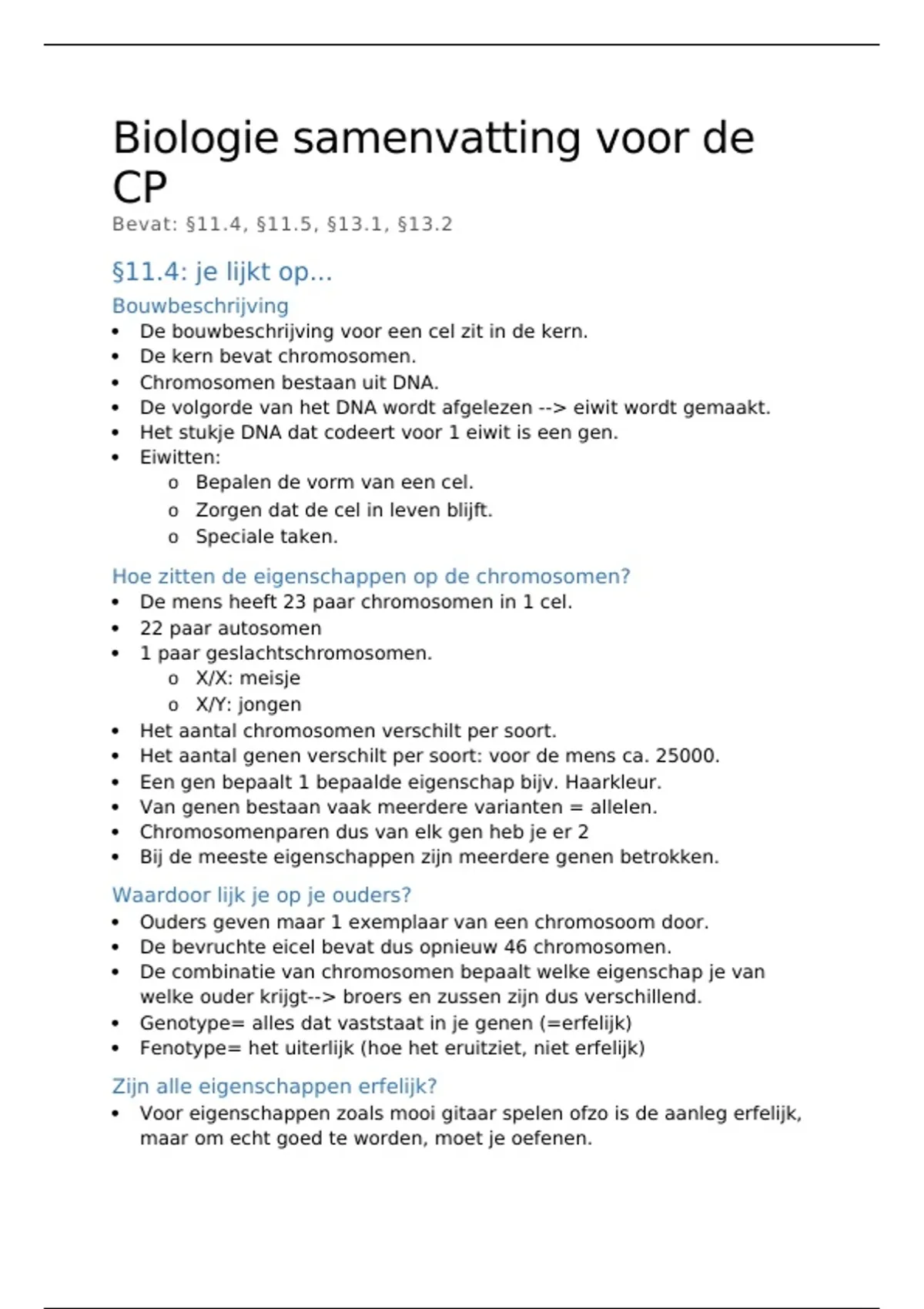 Een gen bepaalt 1 bepaalde eigenschap bijv. Haarkleur.
