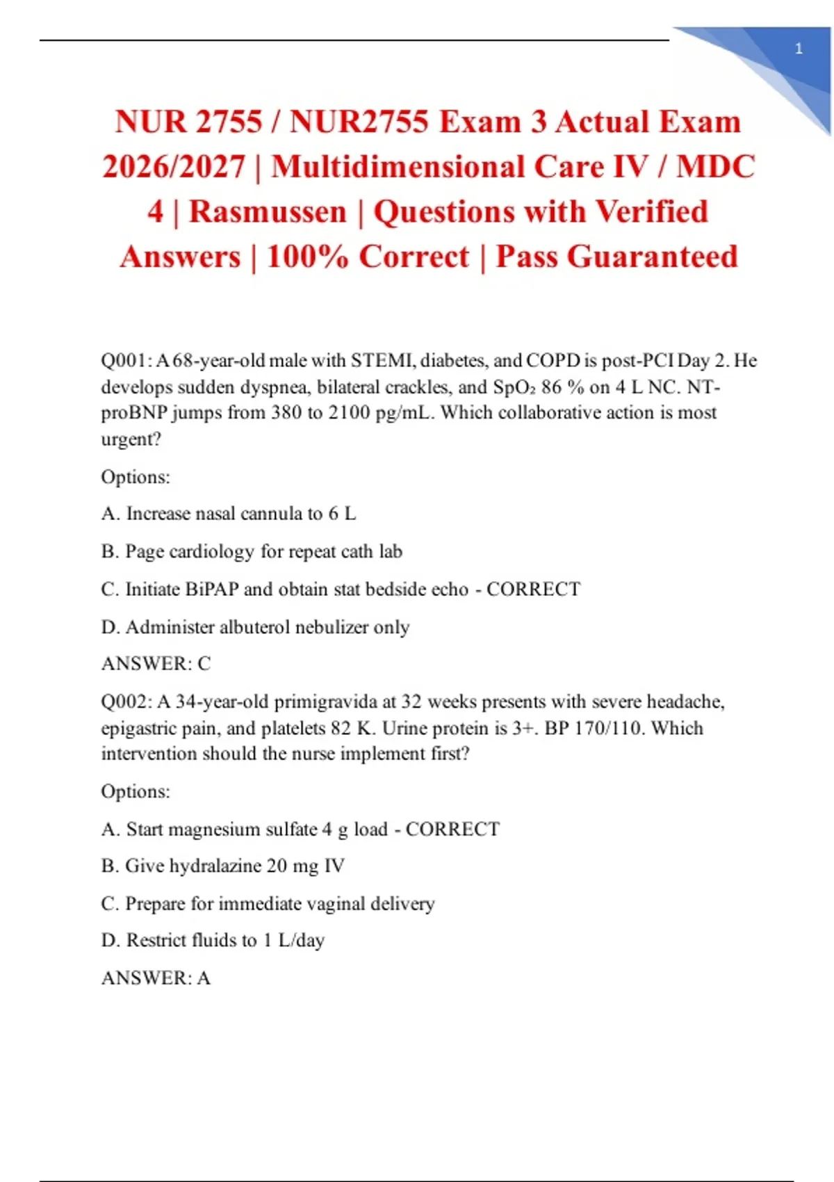 Q001: A 68-year-old male with STEMI, diabetes, and COPD is post-PCI Day 2. He