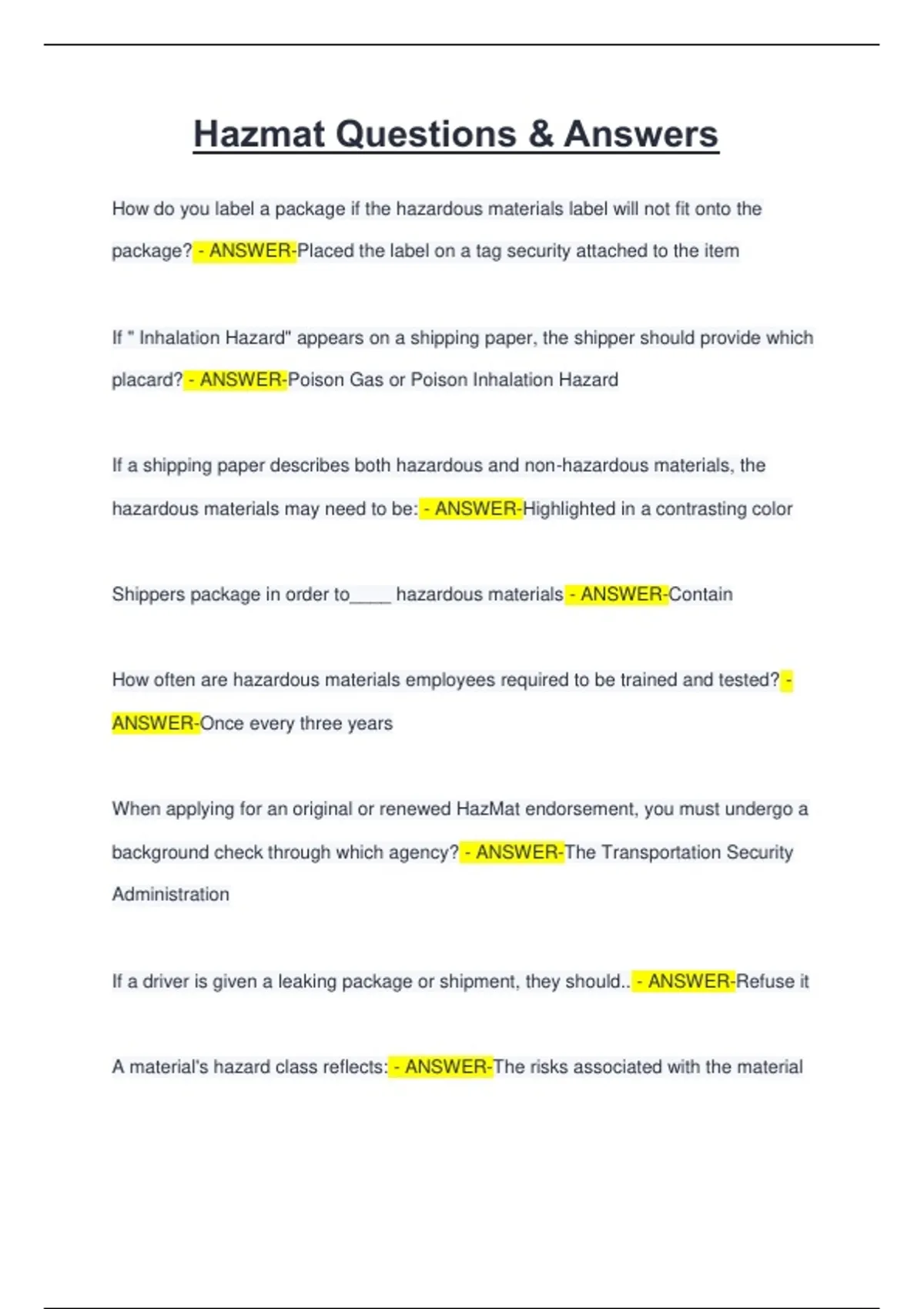 A driver should ensure that: - ANSWER-The shipping paper matches the markings and