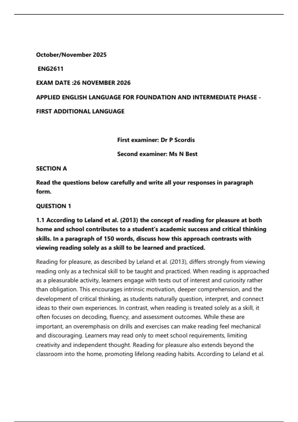 1.1 According to Leland et al. (2013) the concept of reading for pleasure at both