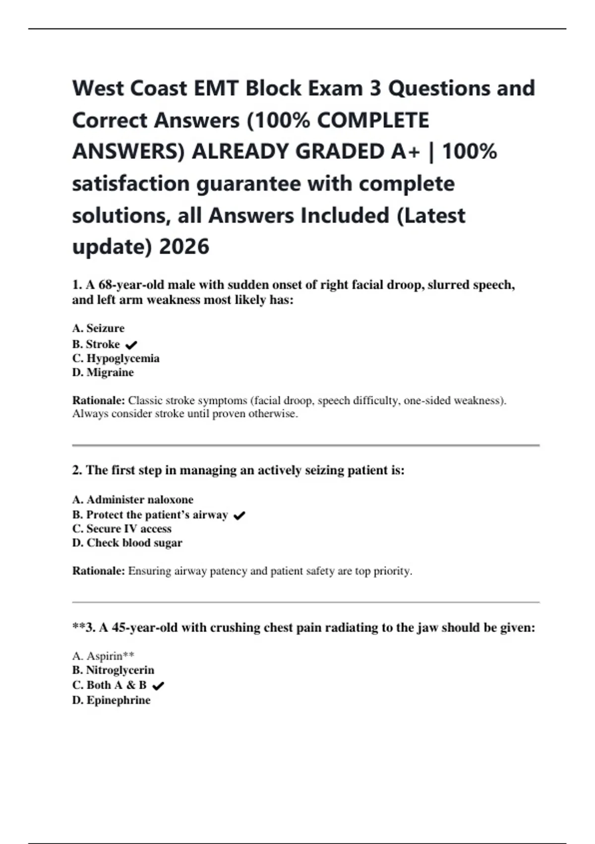 West Coast EMT Block Exam 3 Questions and