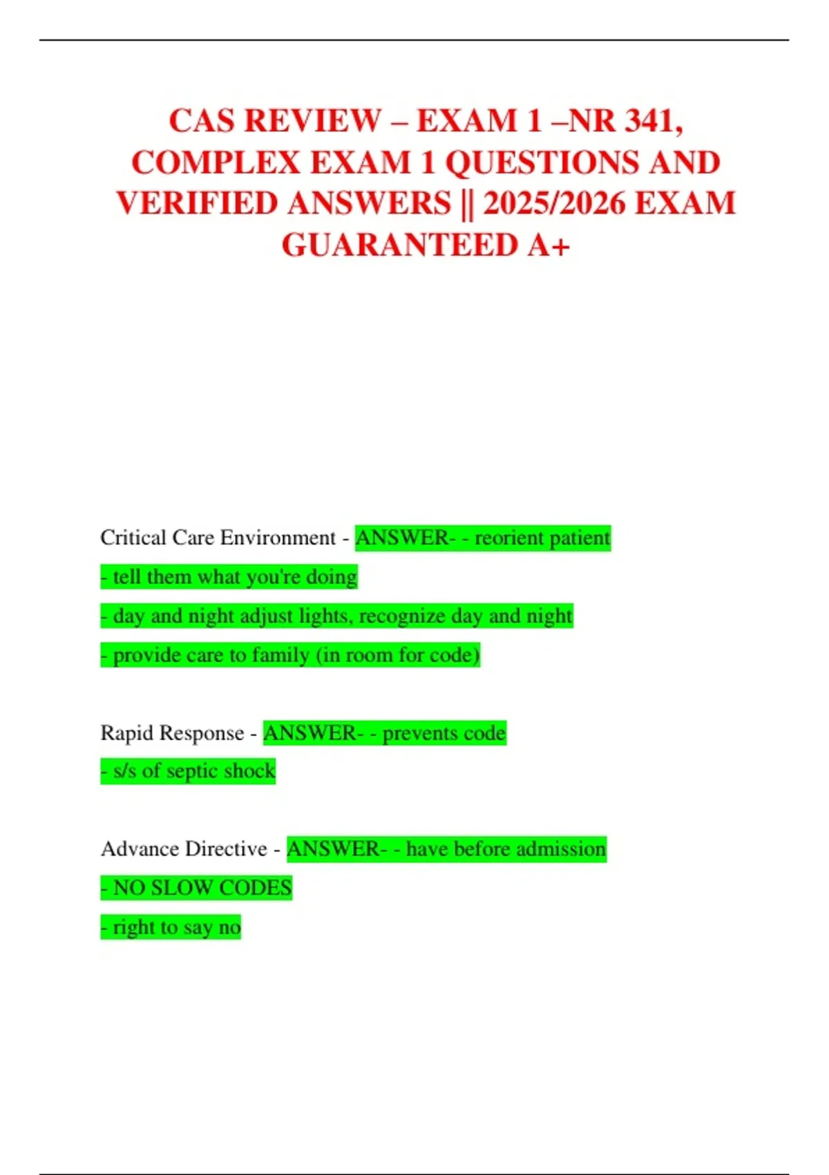 Rapid Response - ANSWER- - prevents code
