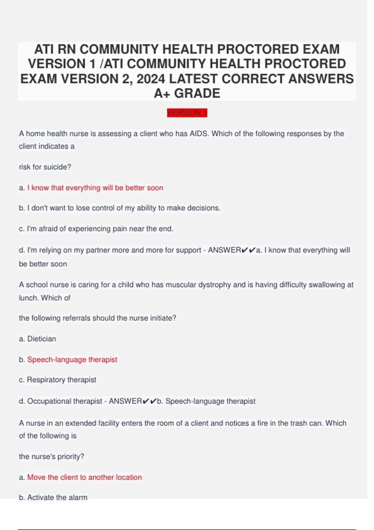 VERSION 1 /ATI COMMUNITY HEALTH PROCTORED