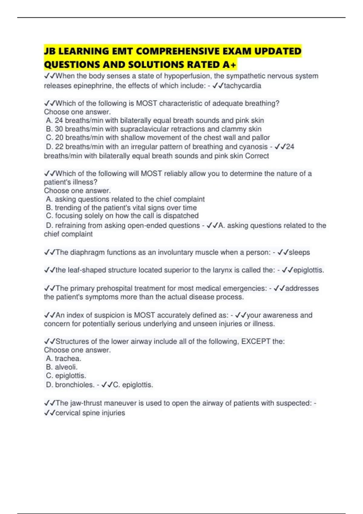 ✔✔The primary prehospital treatment for most medical emergencies: - ✔✔addresses