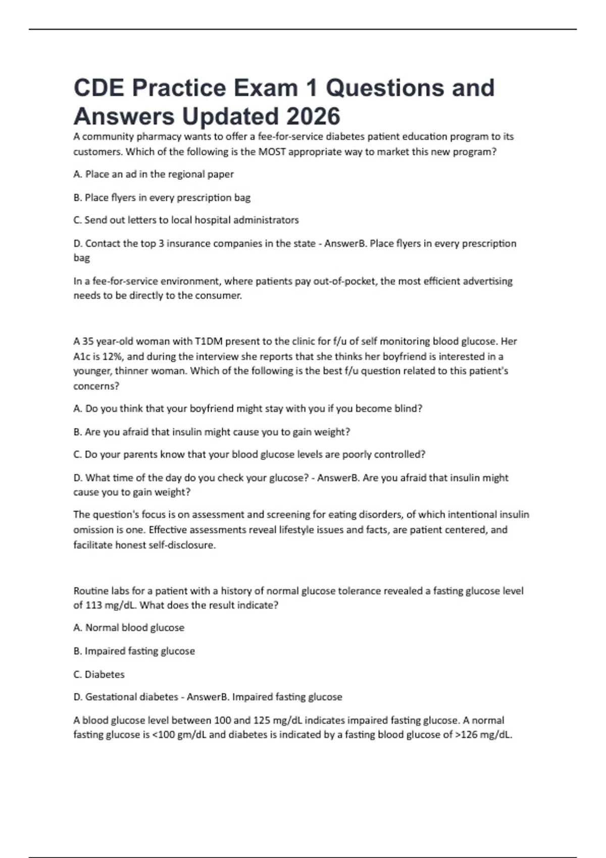 CDE Practice Exam 1 Questions and Answers Updated 2026