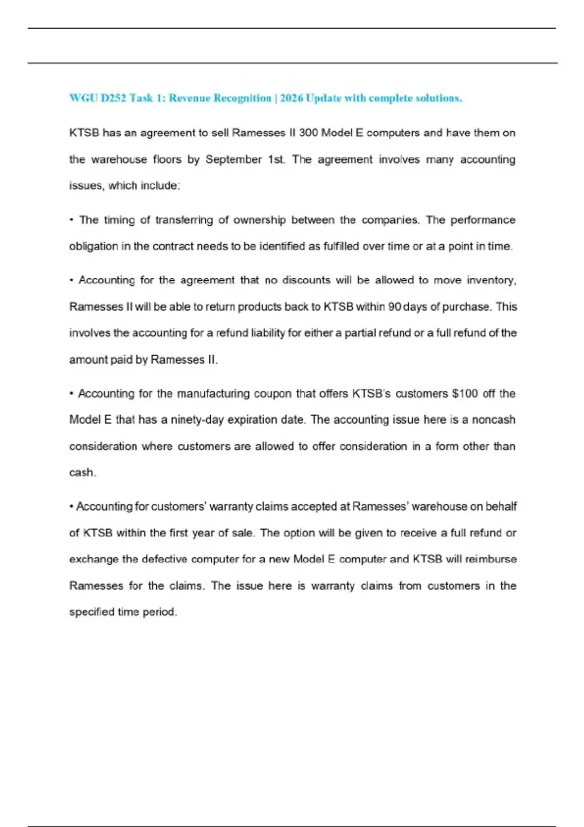 WGU D252 Task 1: Revenue Recognition | 2026 Update with complete solutions.