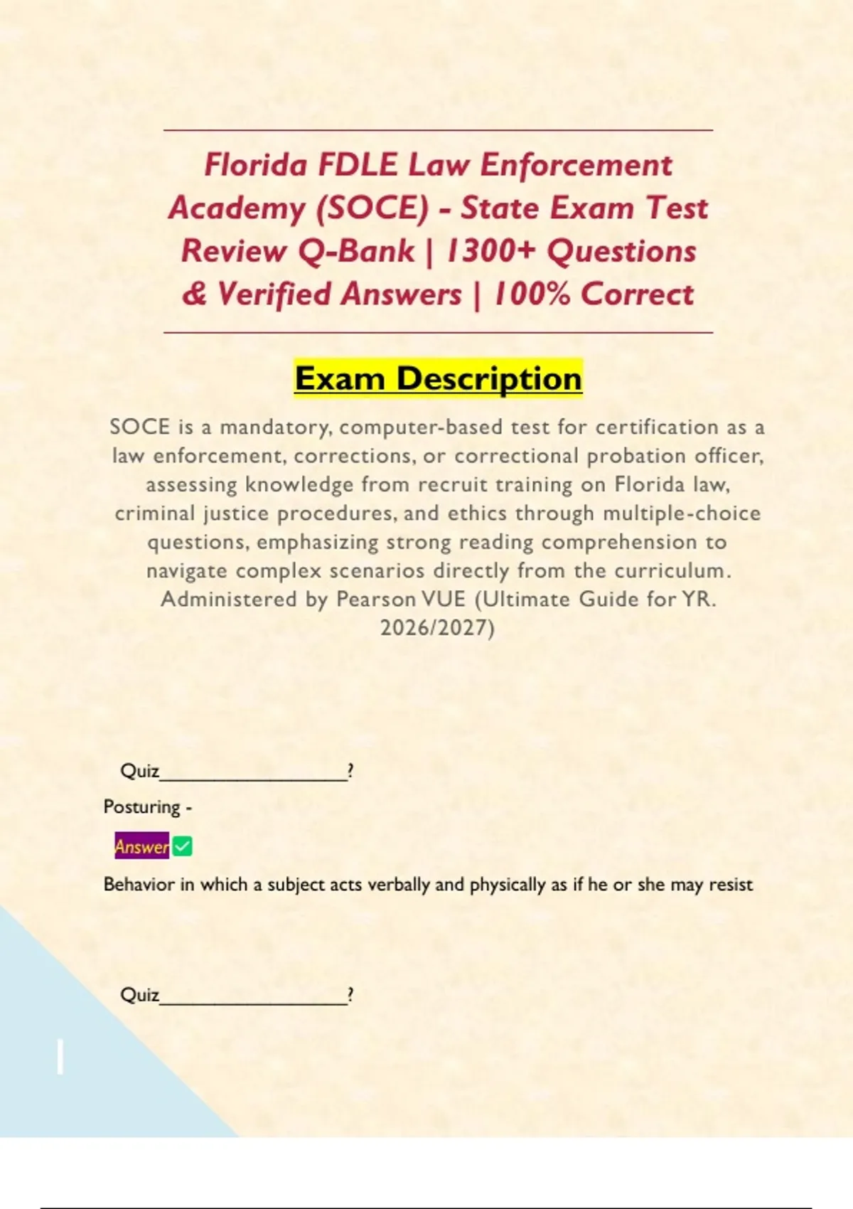 SOCE is a mandatory, computer-based test for certification as a