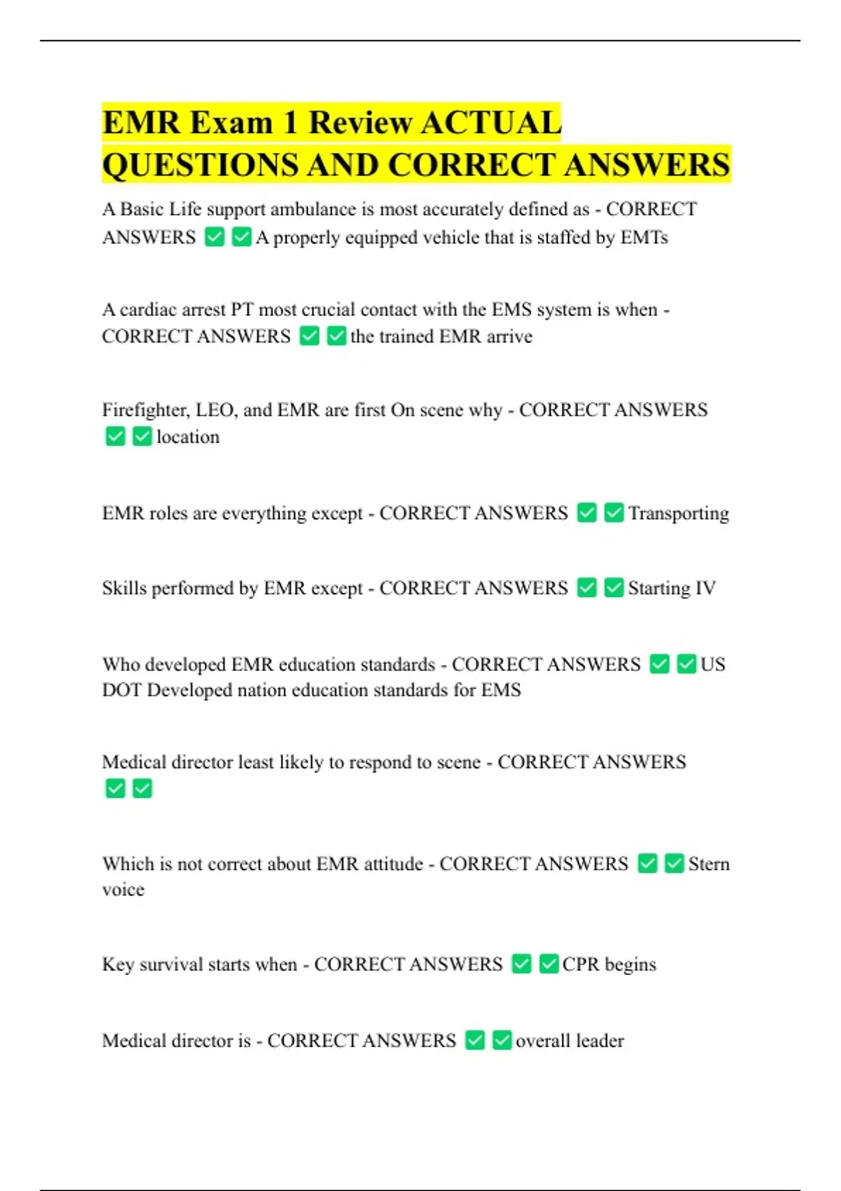CORRECT ANSWERS the trained EMR arrive