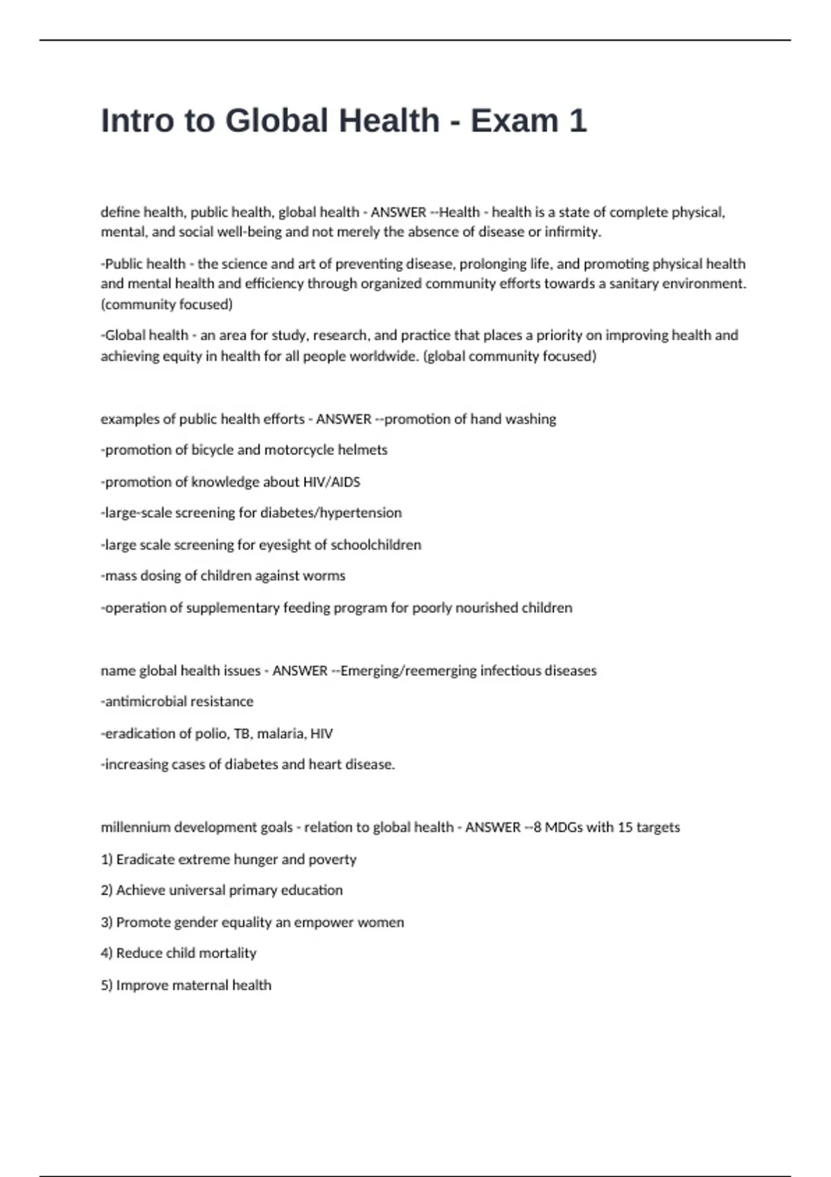 define health, public health, global health - ANSWER --Health - health is a state of complete physical,