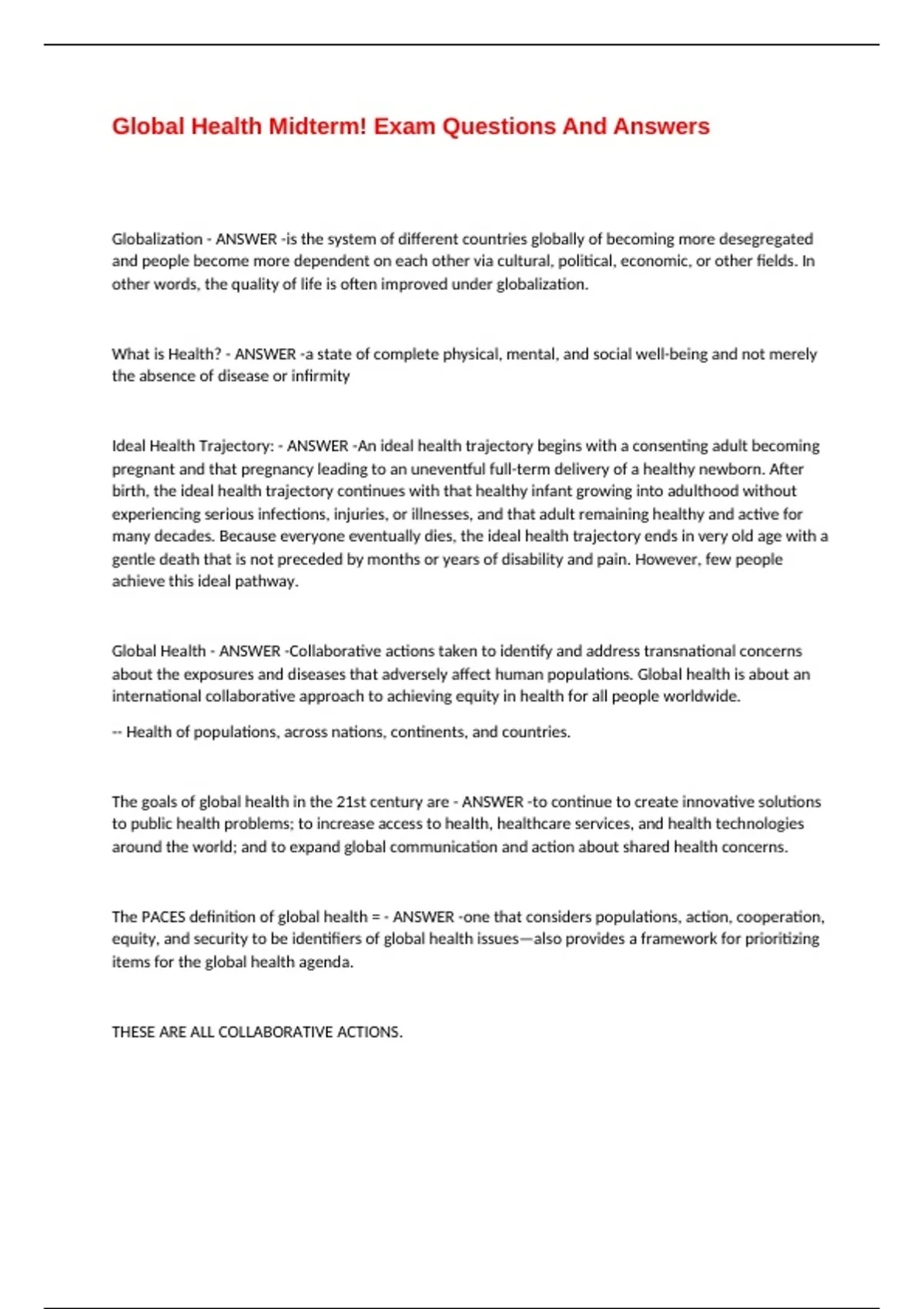 Global Health Midterm! Exam Questions And Answers