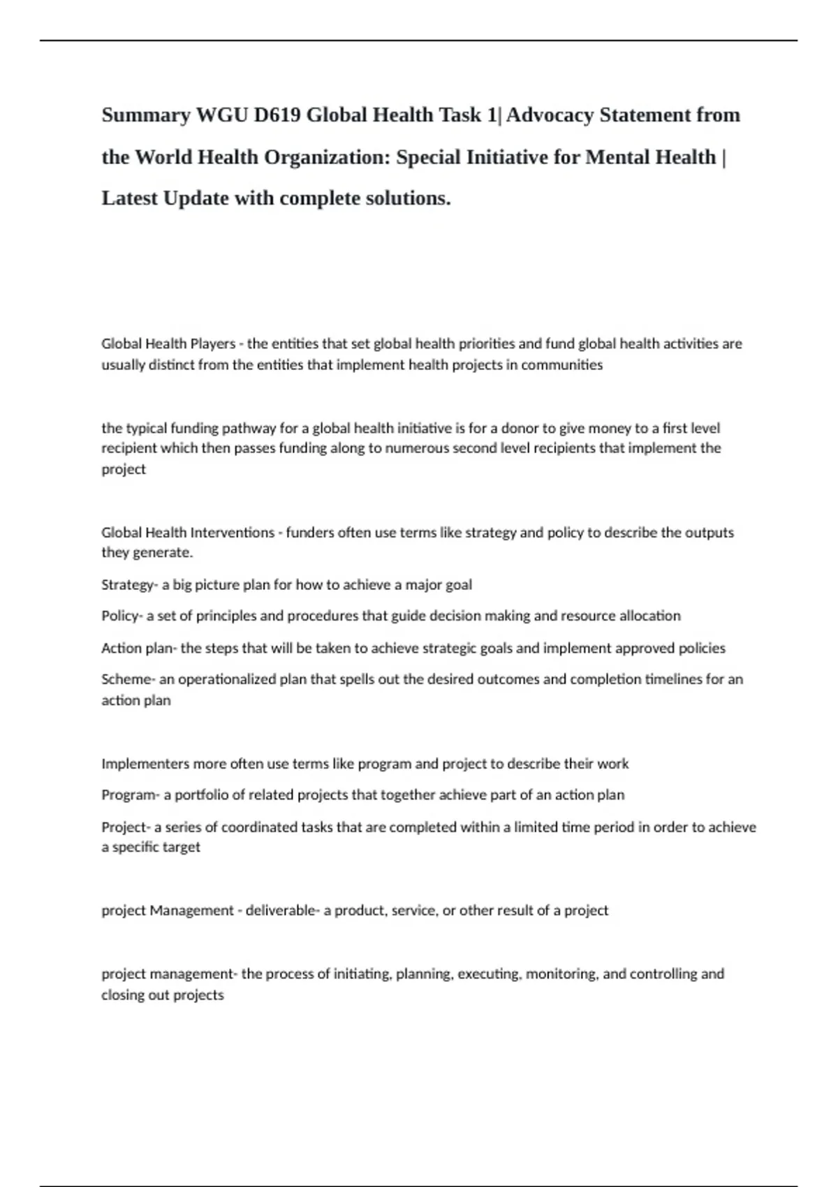 Global Health Interventions - funders often use terms like strategy and policy to describe the outputs