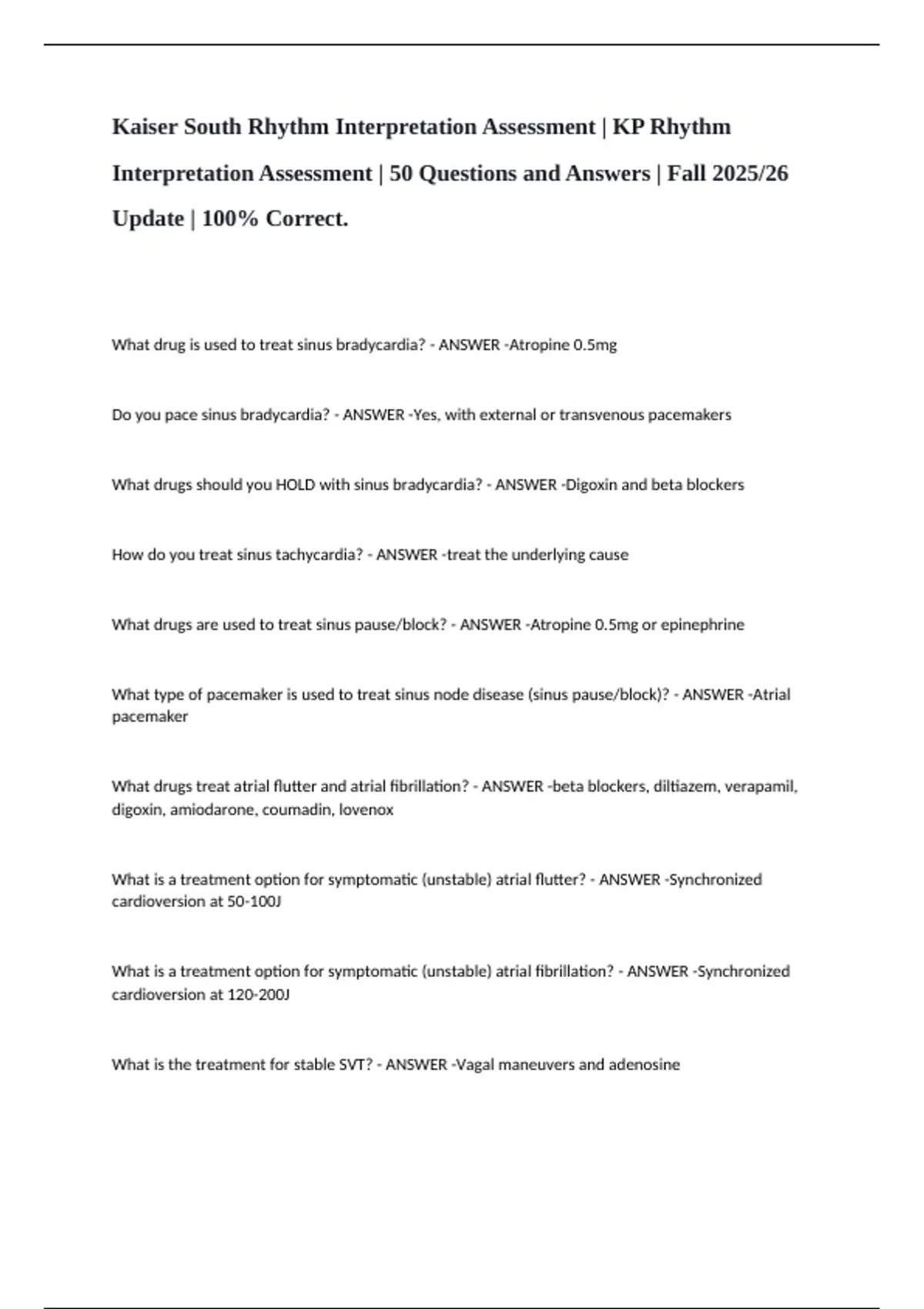 Kaiser South Rhythm Interpretation Assessment | KP Rhythm Interpretation Assessment | 50 Questions and Answers | Fall 2025/26 Update | 100% Correct.