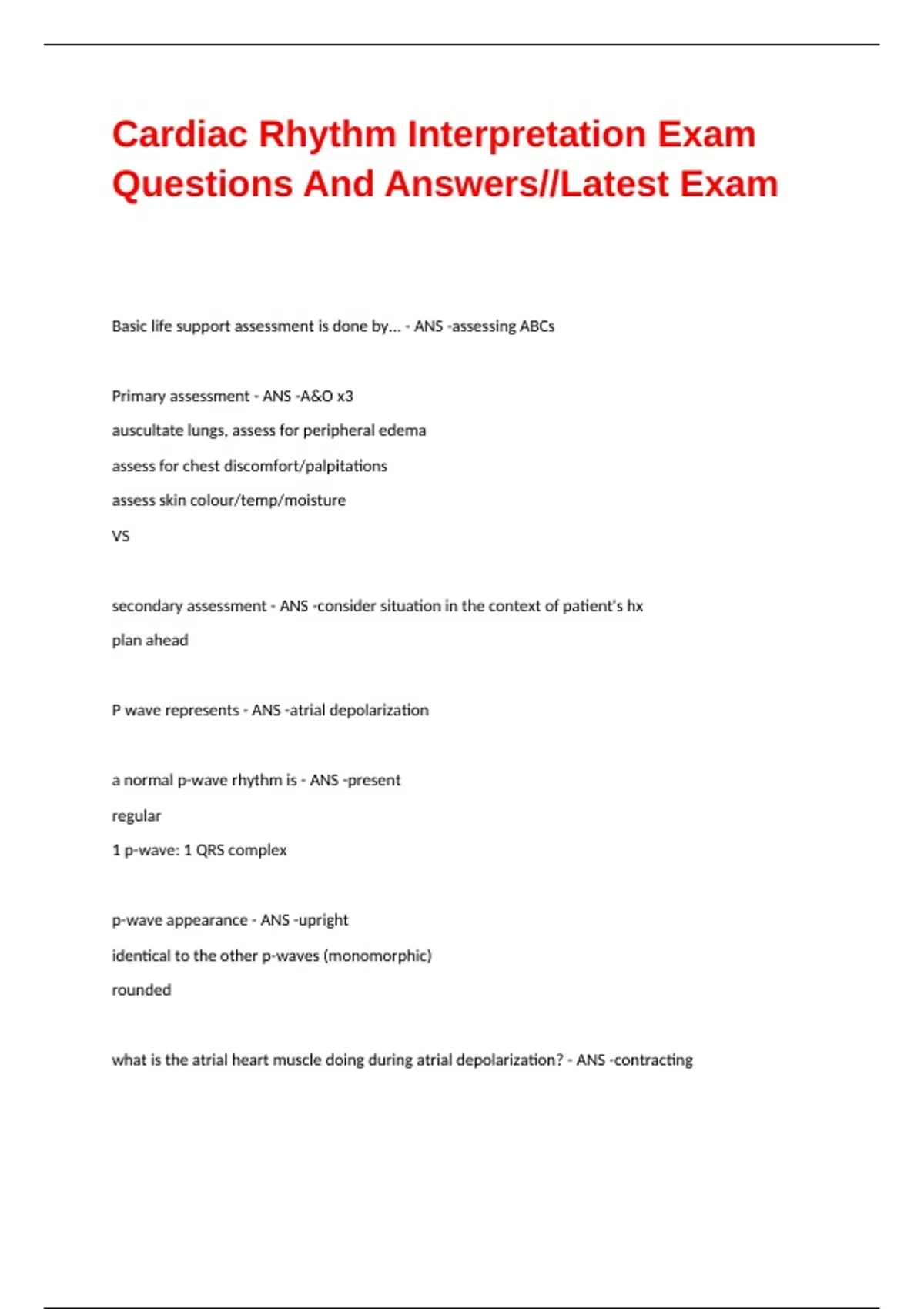 Cardiac Rhythm Interpretation Exam Questions And Answers//Latest Exam