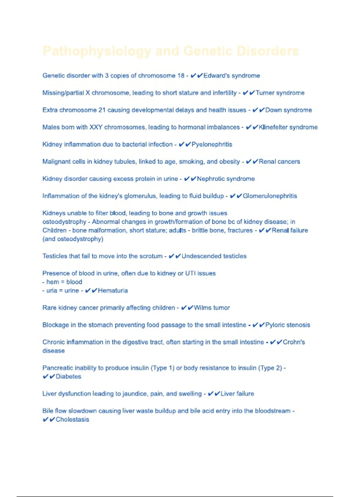 pathophysiology and genetic disorders questions