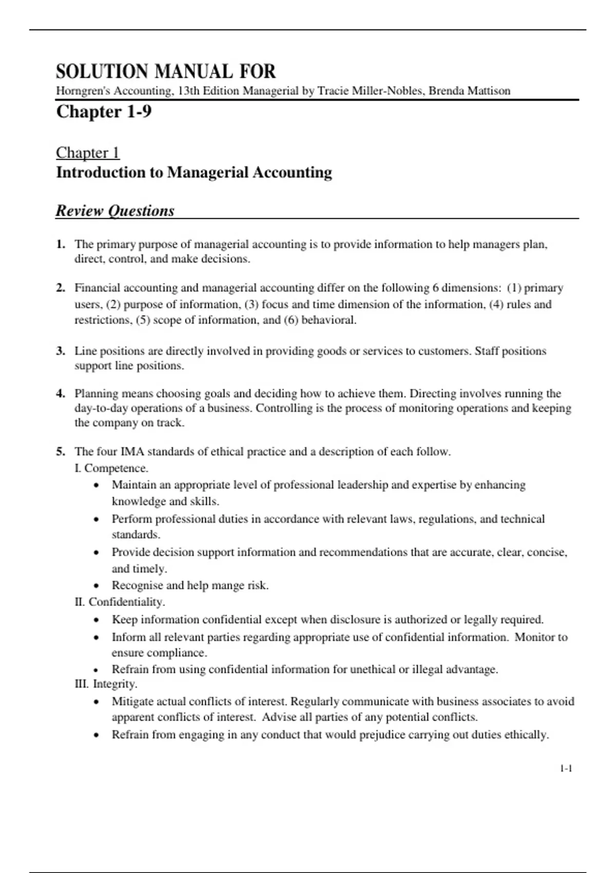 1. The primary purpose of managerial accounting is to provide information to help managers plan,
