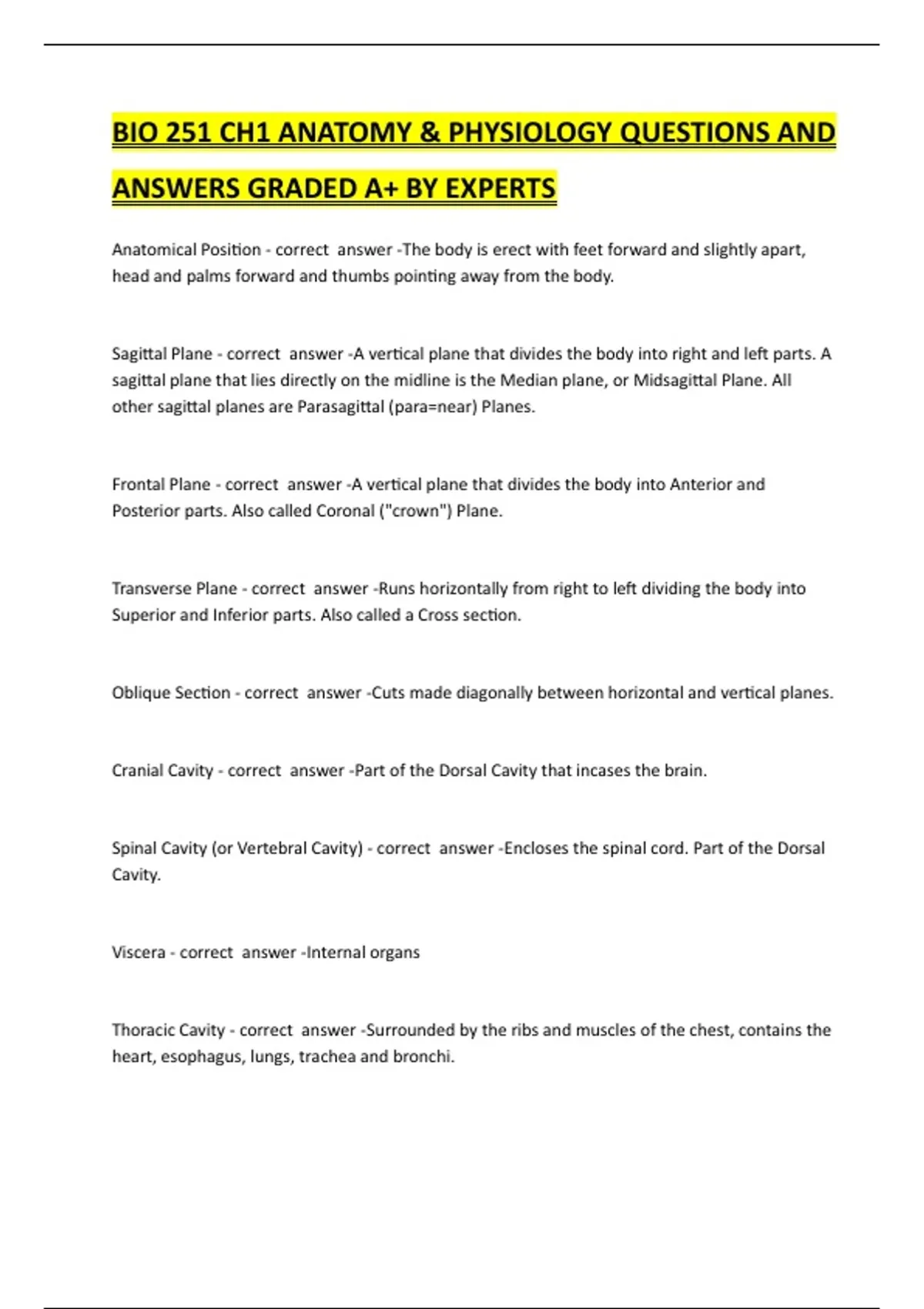 BIO 251 CH1 ANATOMY & PHYSIOLOGY QUESTIONS AND