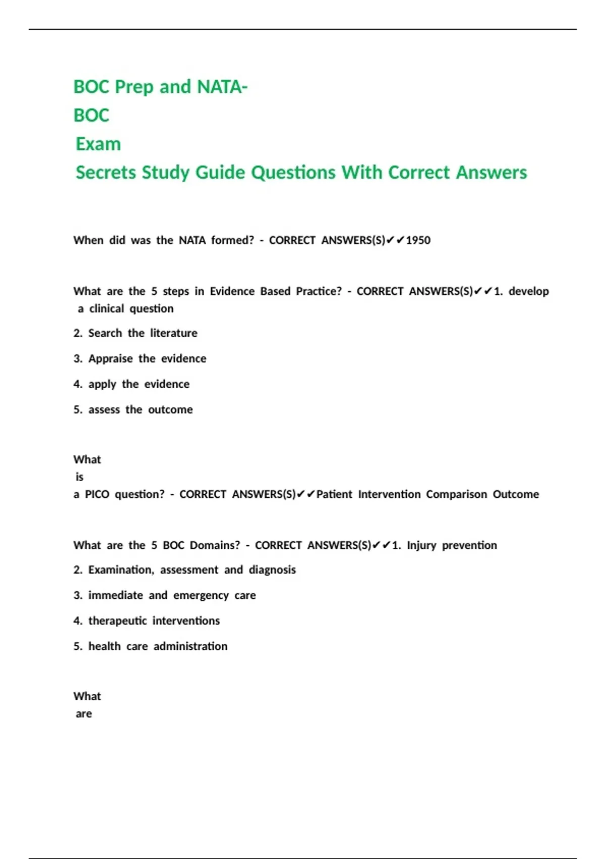 What //are //the //5 //BOC //Domains? //- //CORRECT //ANSWERS(S)✔✔1. //Injury //prevention //