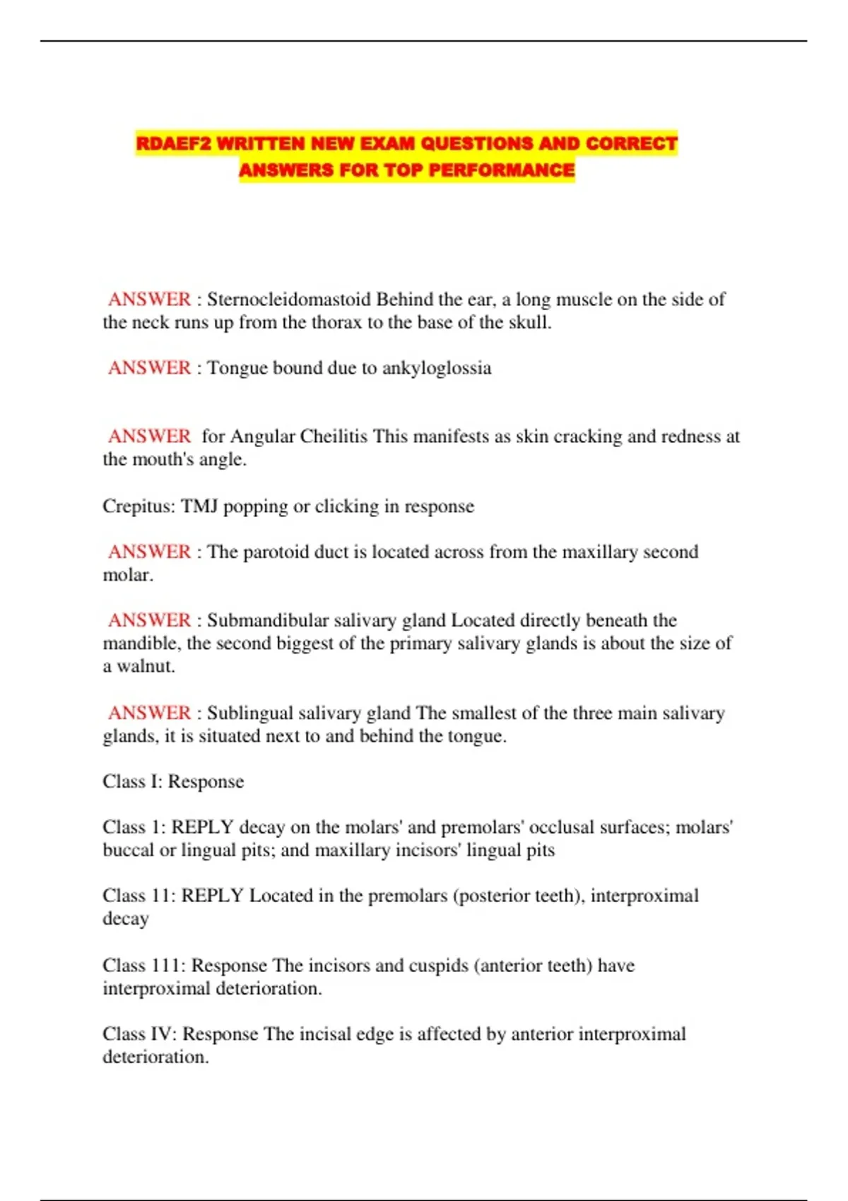 RDAEF2 WRITTEN NEW EXAM QUESTIONS AND CORRECT