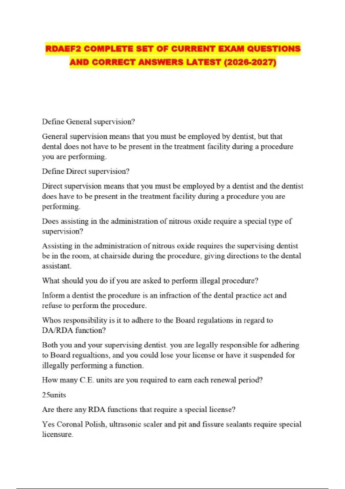 RDAEF2 COMPLETE SET OF CURRENT EXAM QUESTIONS AND CORRECT ANSWERS LATEST ()