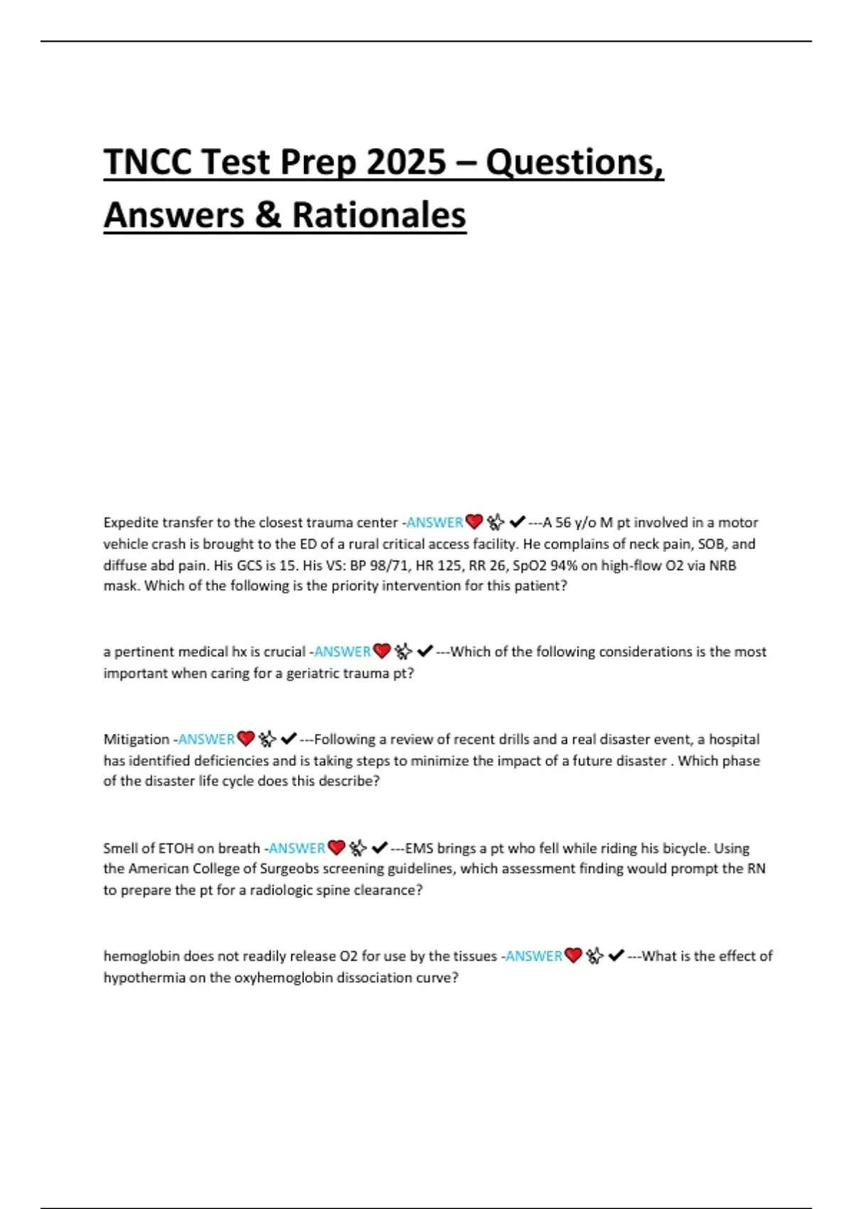 TNCC Test Prep 2025 – Questions, Answers & Rationales
