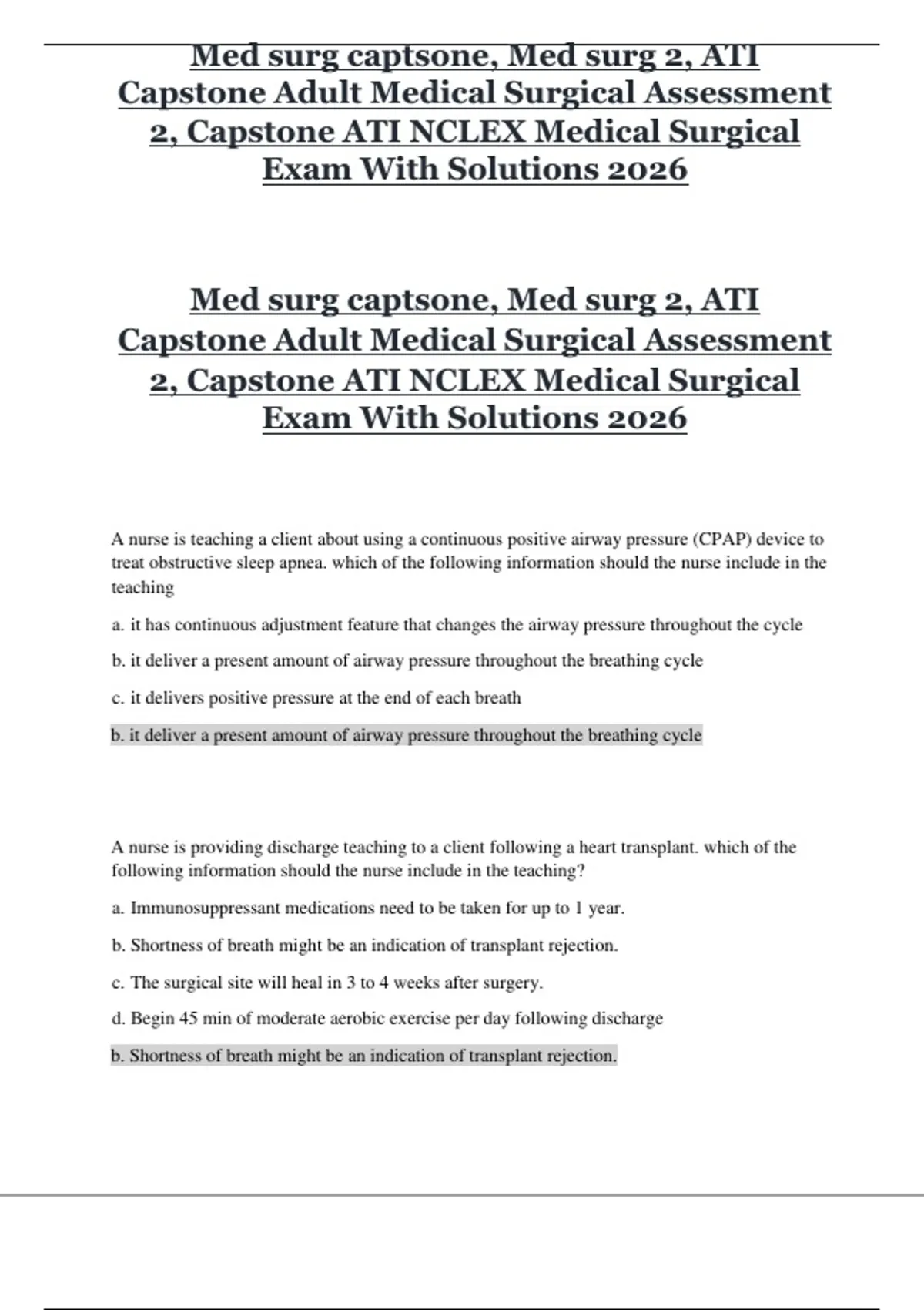 Med surg captsone, Med surg 2, ATI Capstone Adult Medical Surgical Assessment 2, Capstone ATI NCLEX Medical Surgical Exam With Solutions 2026 /Med surg captsone, Med surg 2, ATI Capstone Adult Medical Surgical Assessment 2, Capstone ATI NCLEX Medical Surgical Exam With Solutions 2026 /Med surg captsone, Med surg 2, ATI Capstone Adult Medical Surgical Assessment 2, Capstone ATI NCLEX Medical Surgical Exam With Solutions 2026