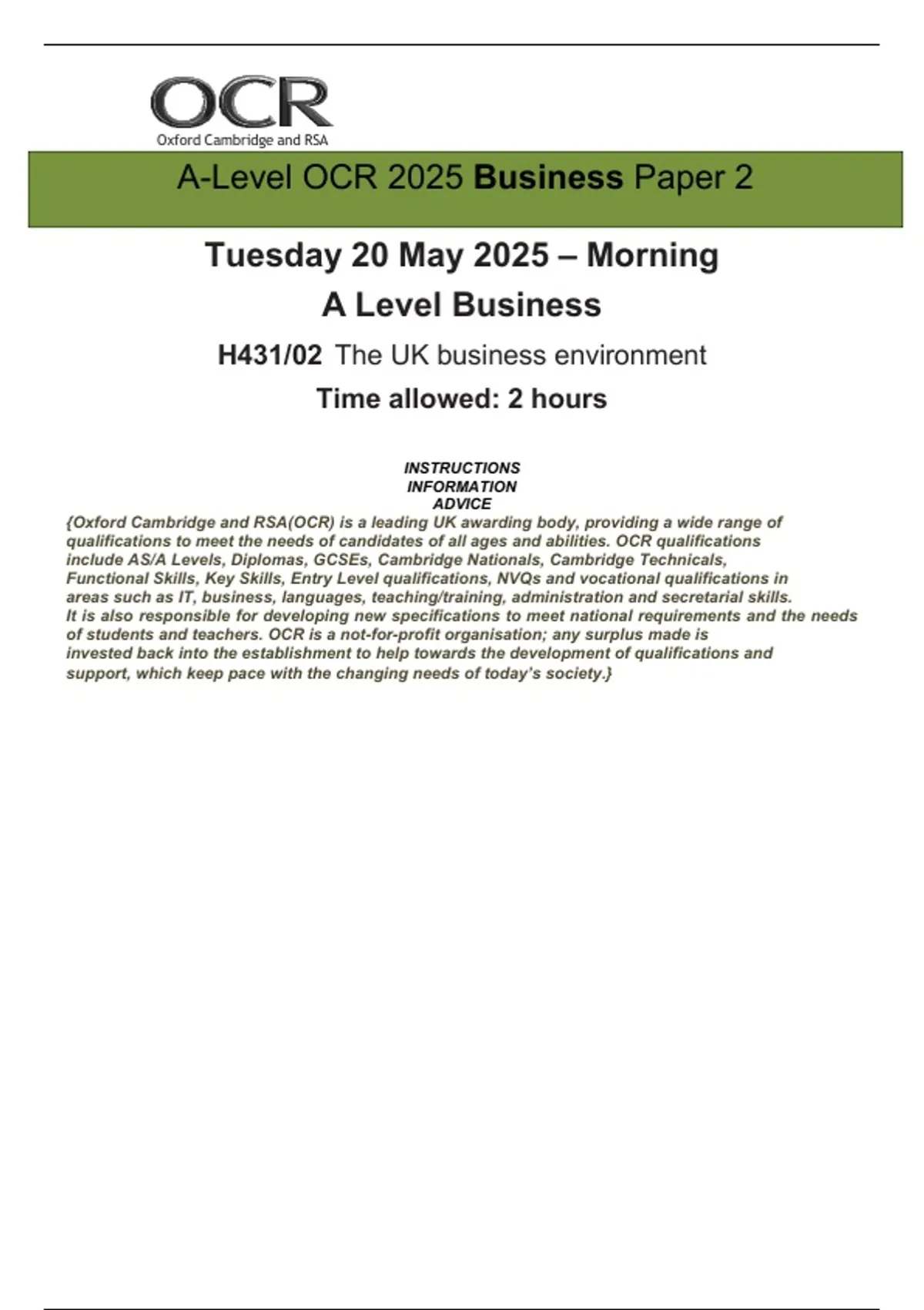 A-Level OCR 2025 Business Paper 2