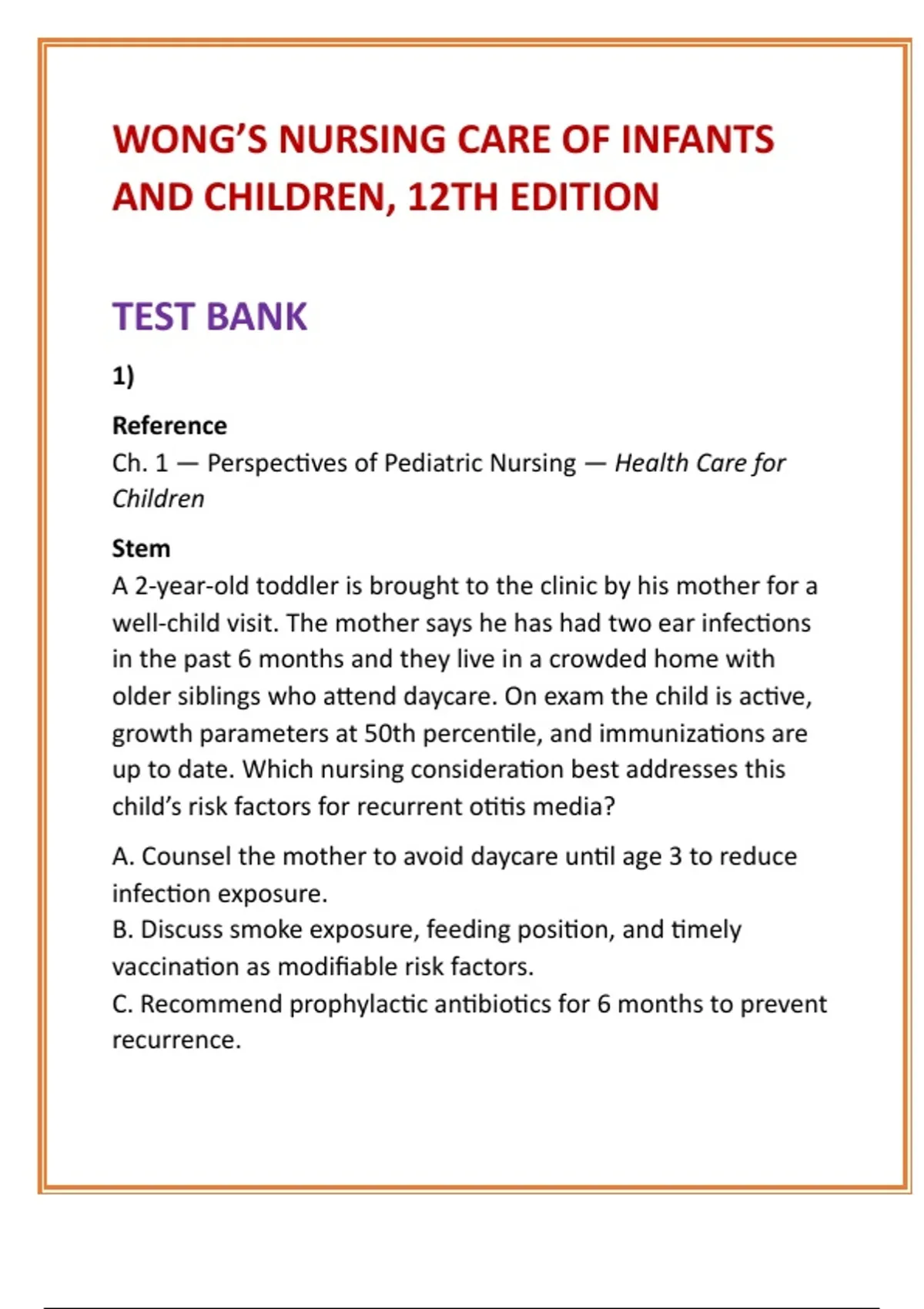 Ch. 1 — Perspectives of Pediatric Nursing — Childhood Health