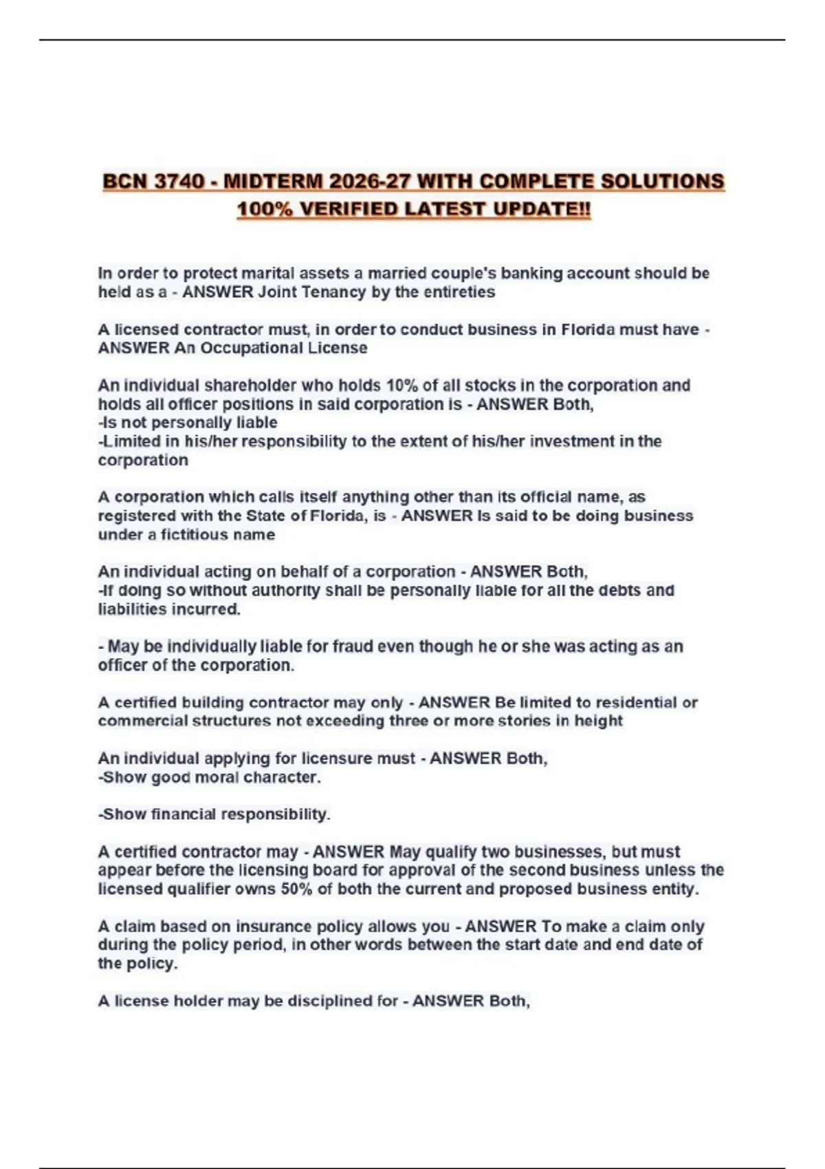 BCN 3740 - MIDTERM 2026-27 WITH COMPLETE SOLUTIONS 100% VERIFIED LATEST UPDATE!!...