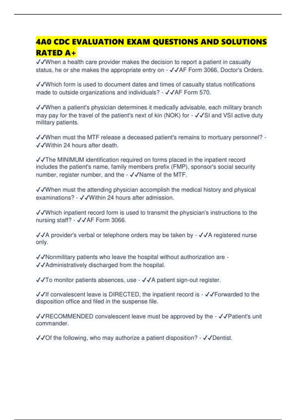 4A0 CDC EVALUATION EXAM QUESTIONS AND SOLUTIONS RATED A+
