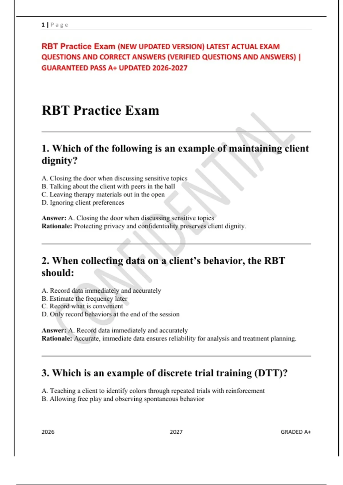 RBT Practice Exam (NEW UPDATED VERSION) LATEST ACTUAL EXAM