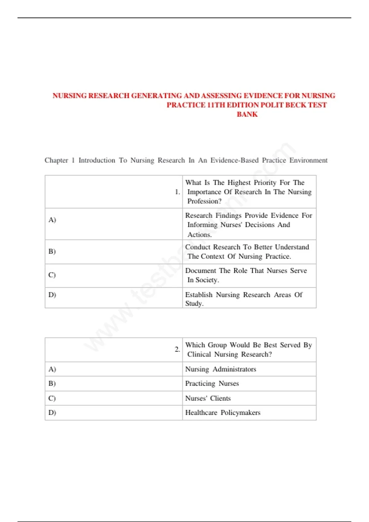 PRACTICE 11TH EDITION POLIT BECK TEST